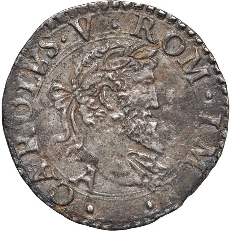 NAPOLI Carlo V (1516-1556 ) Mezzo carlino - cfr Magliocca 69 AG (g 1,49) RR Interessante varianti con gli interpunzoni • al D/