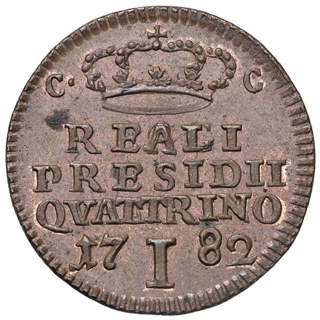 NAPOLI Ferdinando IV - Reali Presidi (1782-1798) Quattrino 1782 - Magliocca 360 (questo esemplare) CU (g 1,72) R Conservazione eccezionale. Ex Leu Numismatik Web Auktion 22 del 2022, lotto 1839