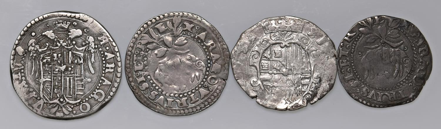 Italian coins - NAPOLI Interessante lotto composta da quattro monete in AG, tre di Carlo V e una di Filippo II. Come da foto, da esaminare