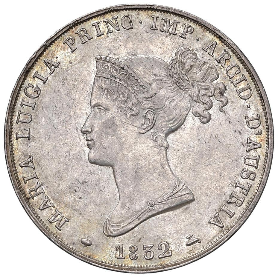 PARMA Maria Luigia d'Austria (1815-1847) 5 Lire 1832 - MIR 1093/4 AG (g 25,02) R
