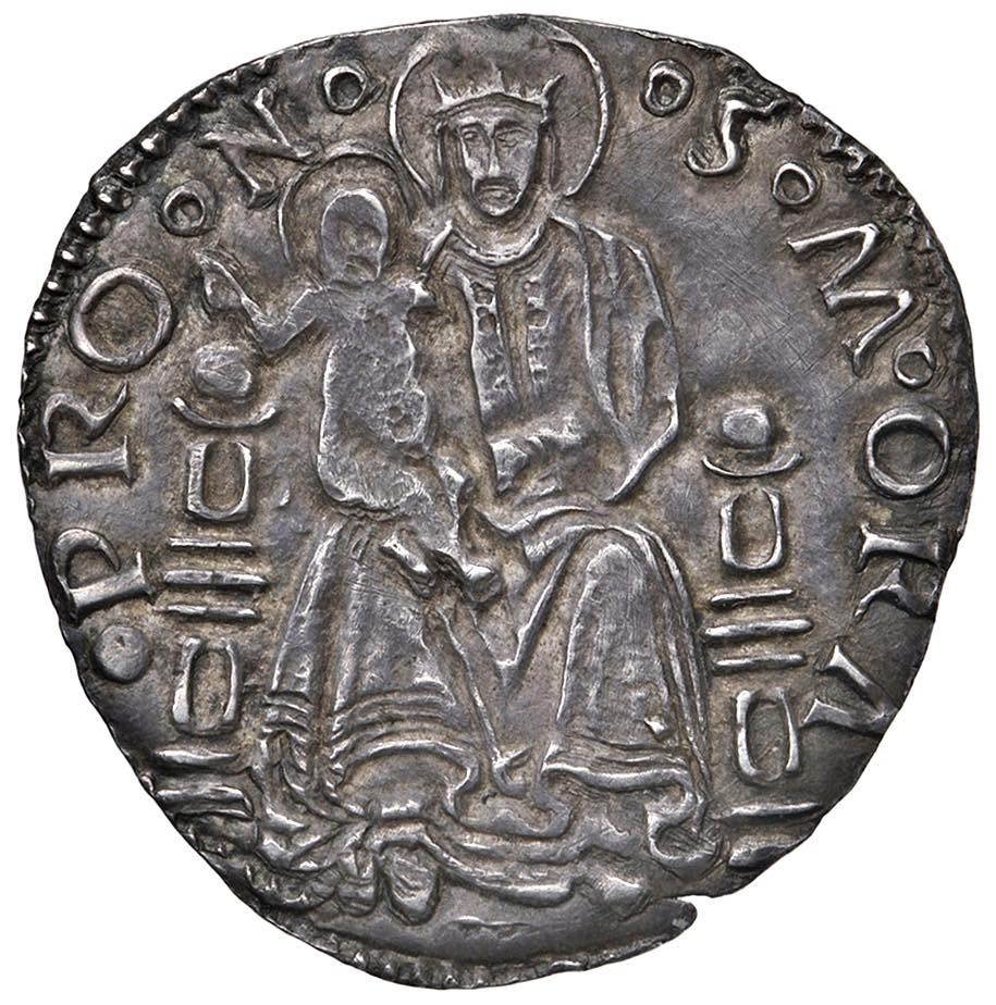 PESARO Giovanni Sforza (1489-1510) Grosso - Bellesia 11/B (questo esemplare illustrato); Cav. 85 AG (g 2,03) Di modulo irregolare ma di ottima qualità con una splendida patina iridescente