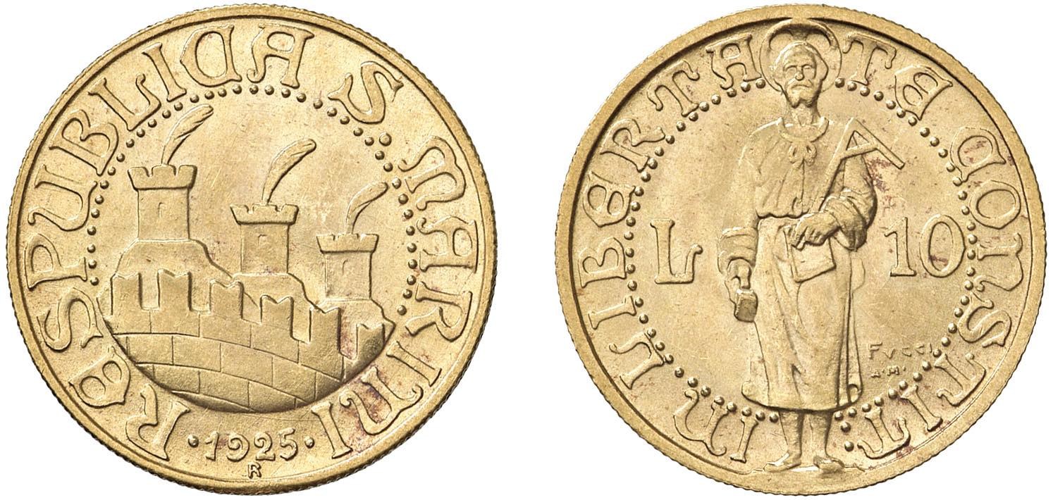 Italian coins - SAN MARINO 20 e 10 Lire 1925 - Gig. 1, 2 AU (g 6,47 + 3...