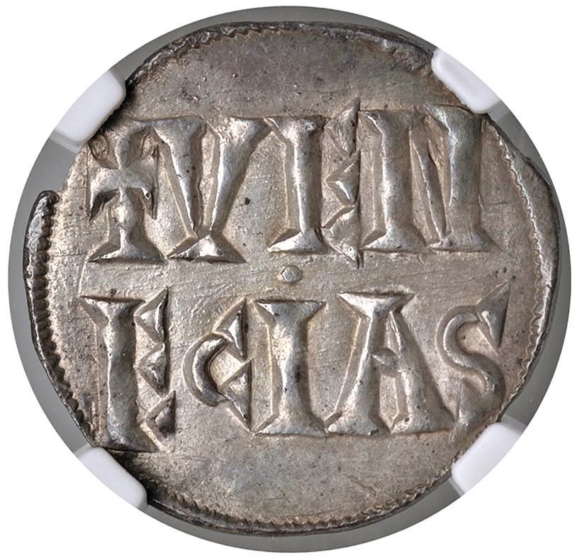 VENEZIA Ludovico I il Pio, Re dei Franchi e Imperatore (814-840) Denaro - Pa. 2 AG (g 1,44) RR Esemplare di altissima qualità con bellissima e delicata patina.