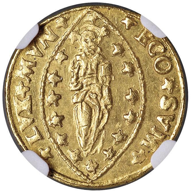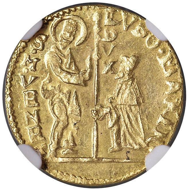 VENEZIA Ludovico Manin (1789-1797) Mezzo zecchino di doppio peso coniato al torchio PIEDFORT - CNI 81 cfr AU (g 3,53) RRRRR Inedito! Esemplare della più grande rarità, in slab NGC n° 6636880-001. Nell'asta NAC 43 (Venezia d'élite - Collezione Curti), lotto 83, è stato venduto a € 1.100 + diritti uno Zecchino a nome di Ludovico Manin, di peso regolare, ma con caratteristiche tecniche di coniazione del tutto simili al presente Mezzo Zecchino di doppio peso. L'esemplare in oggetto è stato descritto con la seguente nota: "Per le sue caratteristiche tecniche la moneta venne certamente tirata al torchio; probabilmente trattasi di una prova effettuata su un torchio di nuova installazione per monete di piccolo modulo; dovrebbe trattarsi dello stesso macchinario utilizzato per coniare lo zecchino di nuovo tipo, al nome di Francesco II, che il Pagani assegna all'anno 1798." Per quanto concerne la monetazione a nome di Ludovico Manin, il Corpus Nummorum Italicorum menziona un esemplare della collezione Zoppola (CNI 82) avente il peso g 1,76 e descrivendolo con la nota "Forse è una prova del quarto di zecchino". Questa moneta è stata poi venduta all'asta NAC 108, lotto 1245. Dall'esame delle immagini non sembrerebbe essere stata coniata al torchio; tale caratteristica non viene infatti menzionata dal compilatore del catalogo, come riportato invece per il summenzionato Zecchino coniato a nome di Ludovico Manin