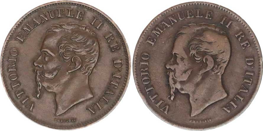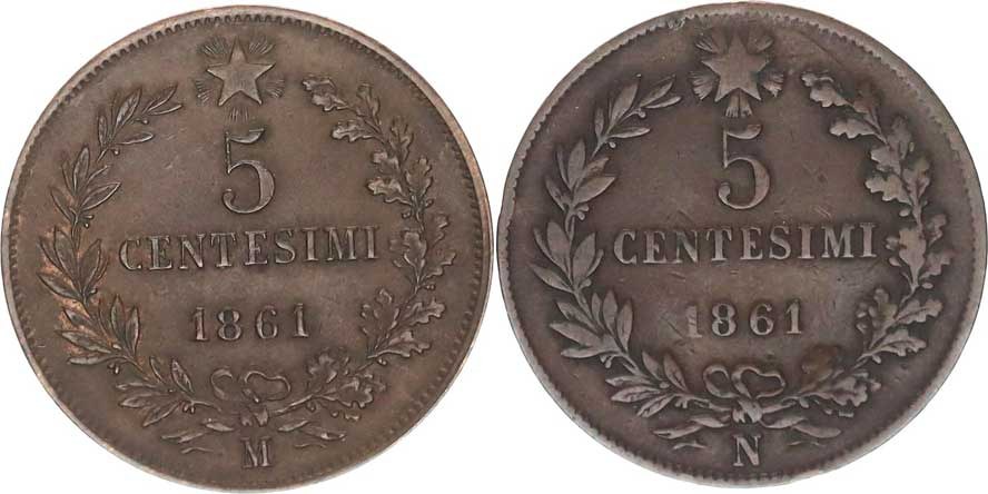 5 Centesimi 1861 N (Neapol); 1861 M (Milán) 2 ks