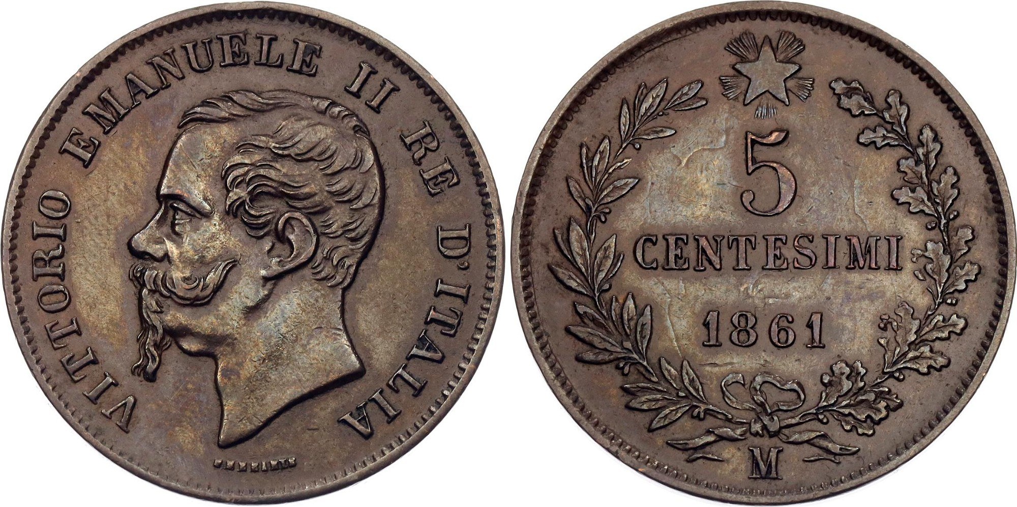 Italy 5 Centesimi 1861 M Clash Marks Error