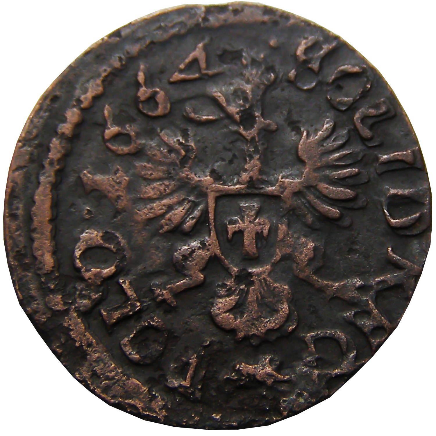 Wazowie, Jan II Kazimierz (1648-1668), szeląg (boratynka) koronna 1664, mennica Ujazdów