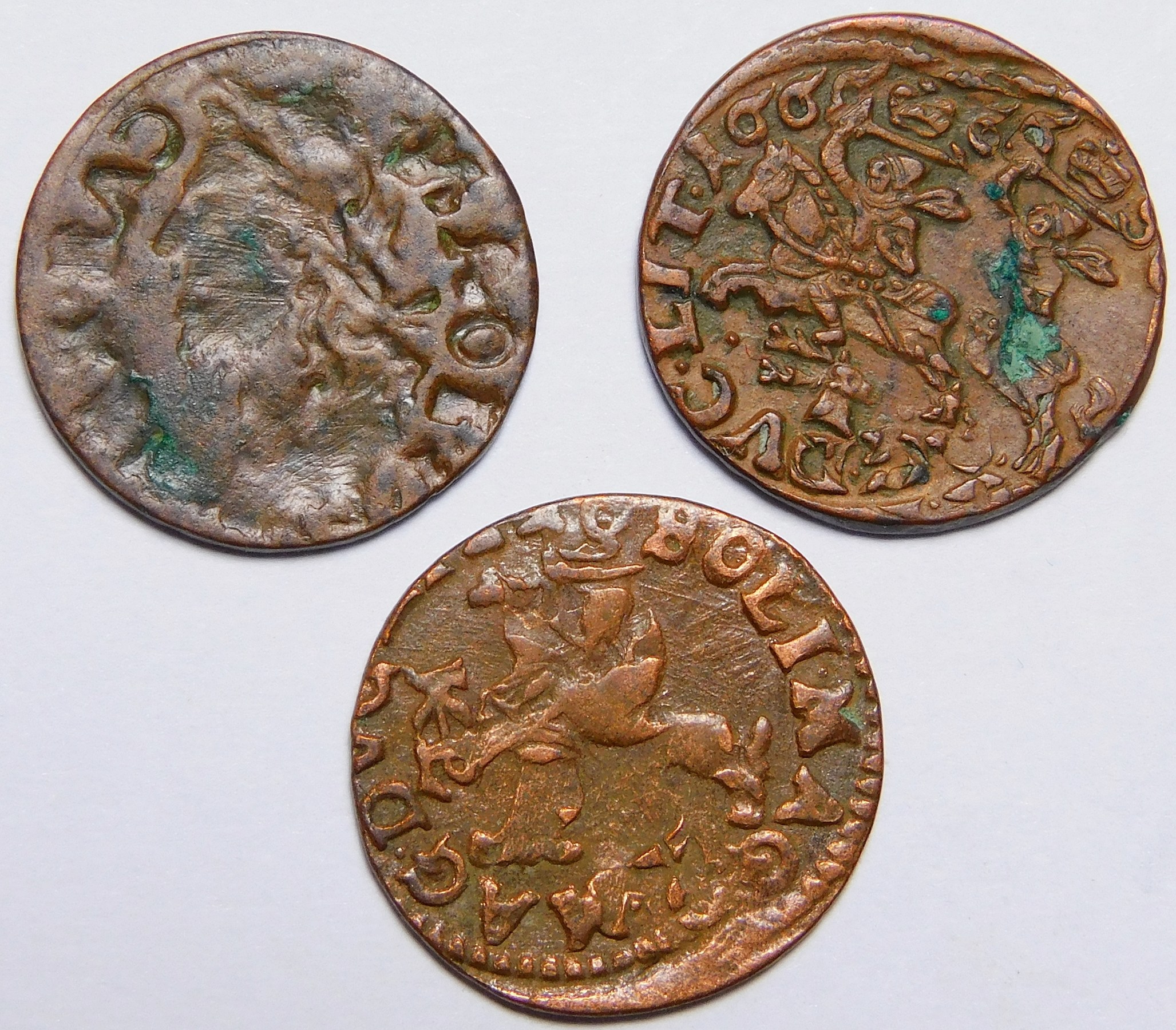 Jan II Kazimierz, Szeląg – ciekawe destrukty – zestaw (szt. 3)