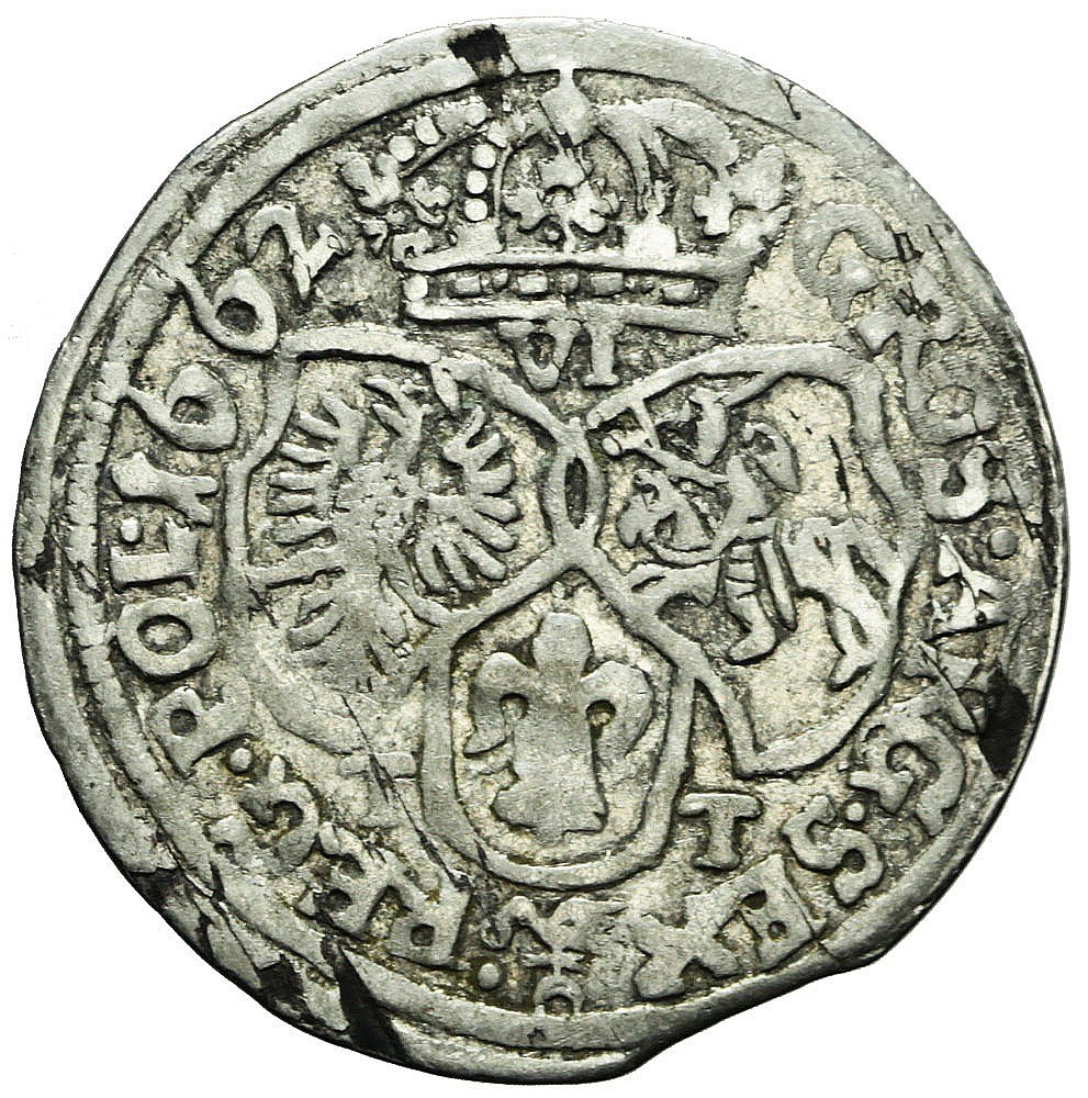 Jan II Kazimierz, Szóstak 1662 TT, Bydgoszcz, odmiana bez obwódek