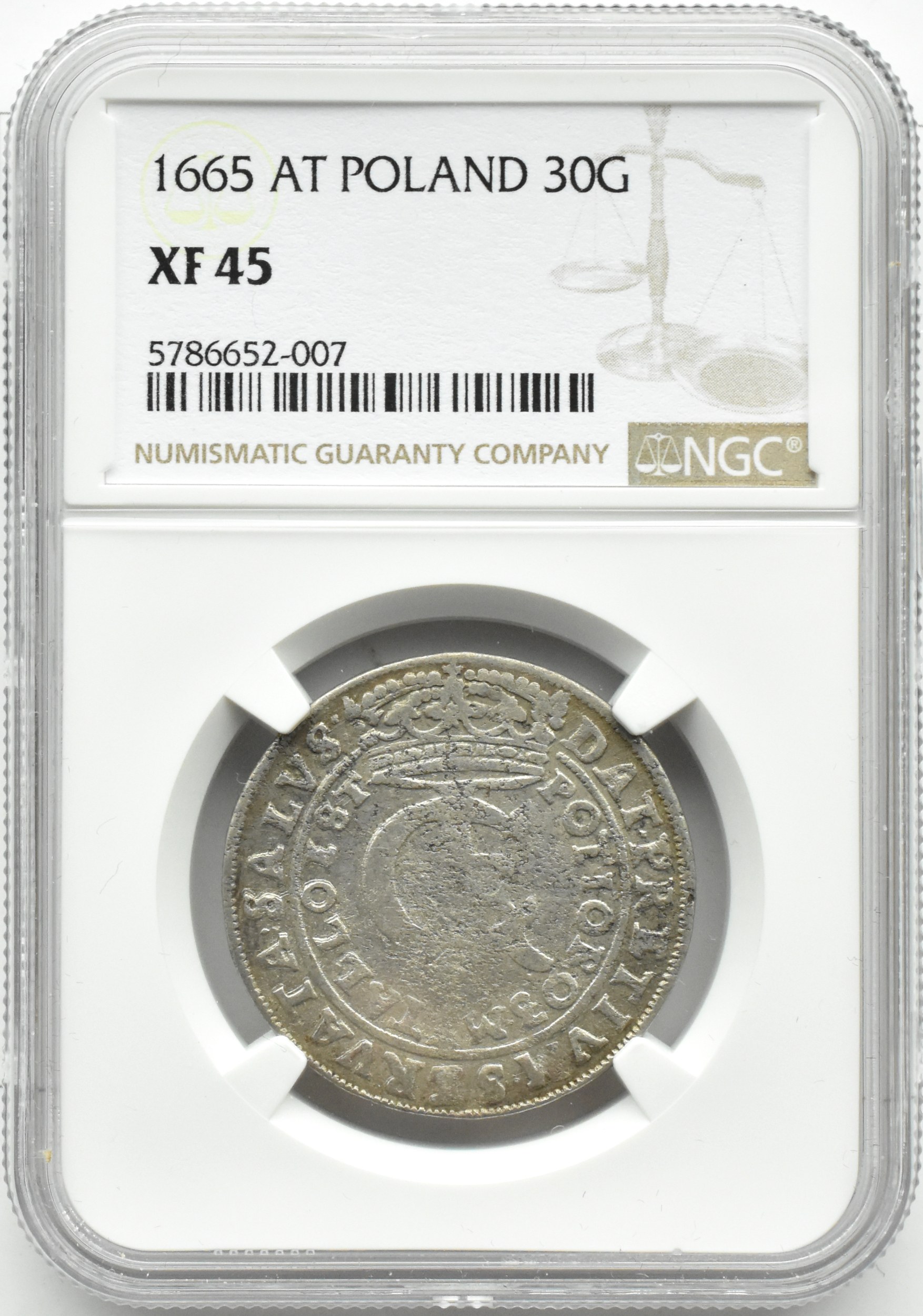 Wazowie, Jan II Kazimierz (1648-1668), XXX groszy - złotówka (tymf) 1665 AT, mennica Bydgoszcz, NGC XF45