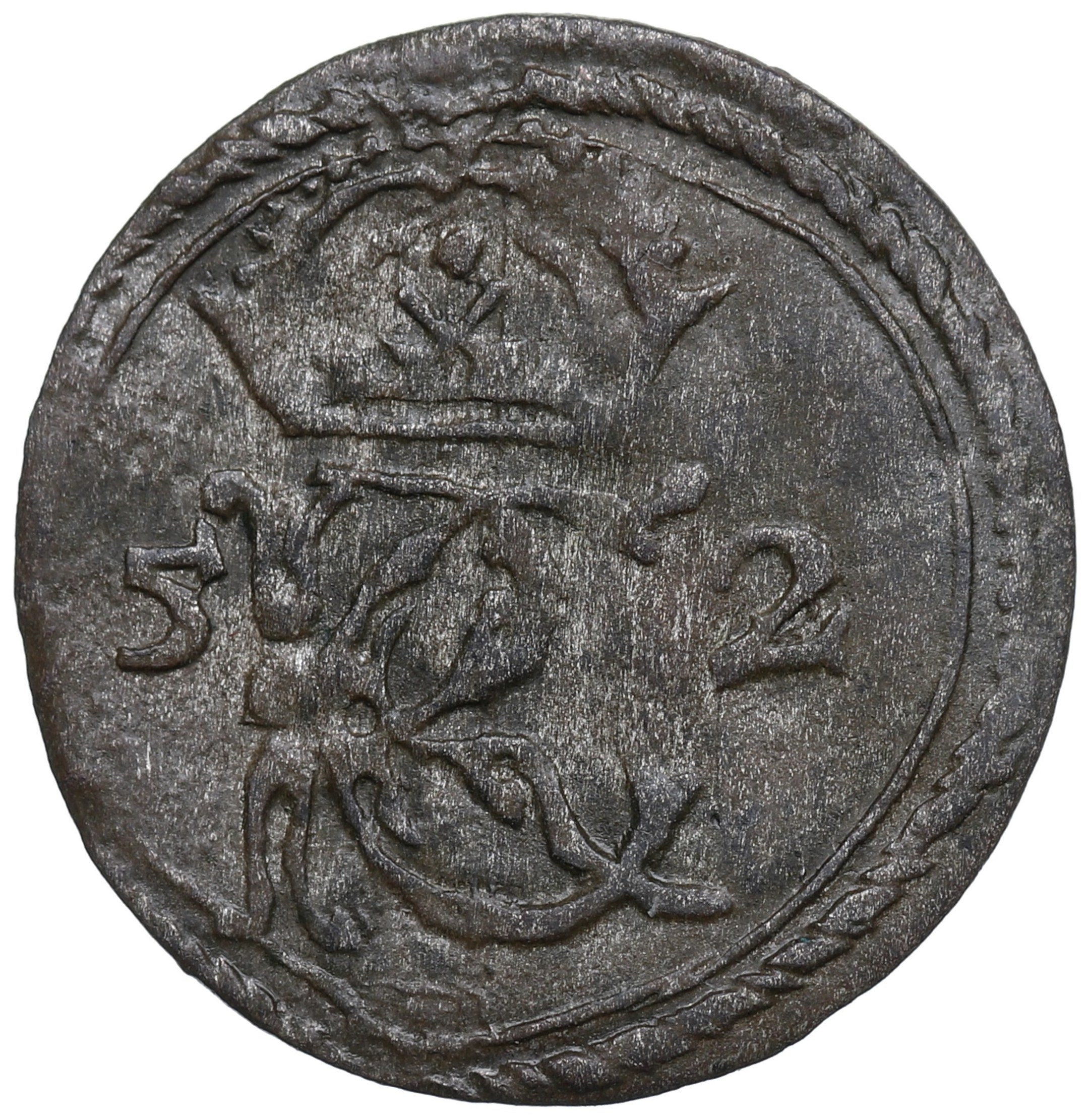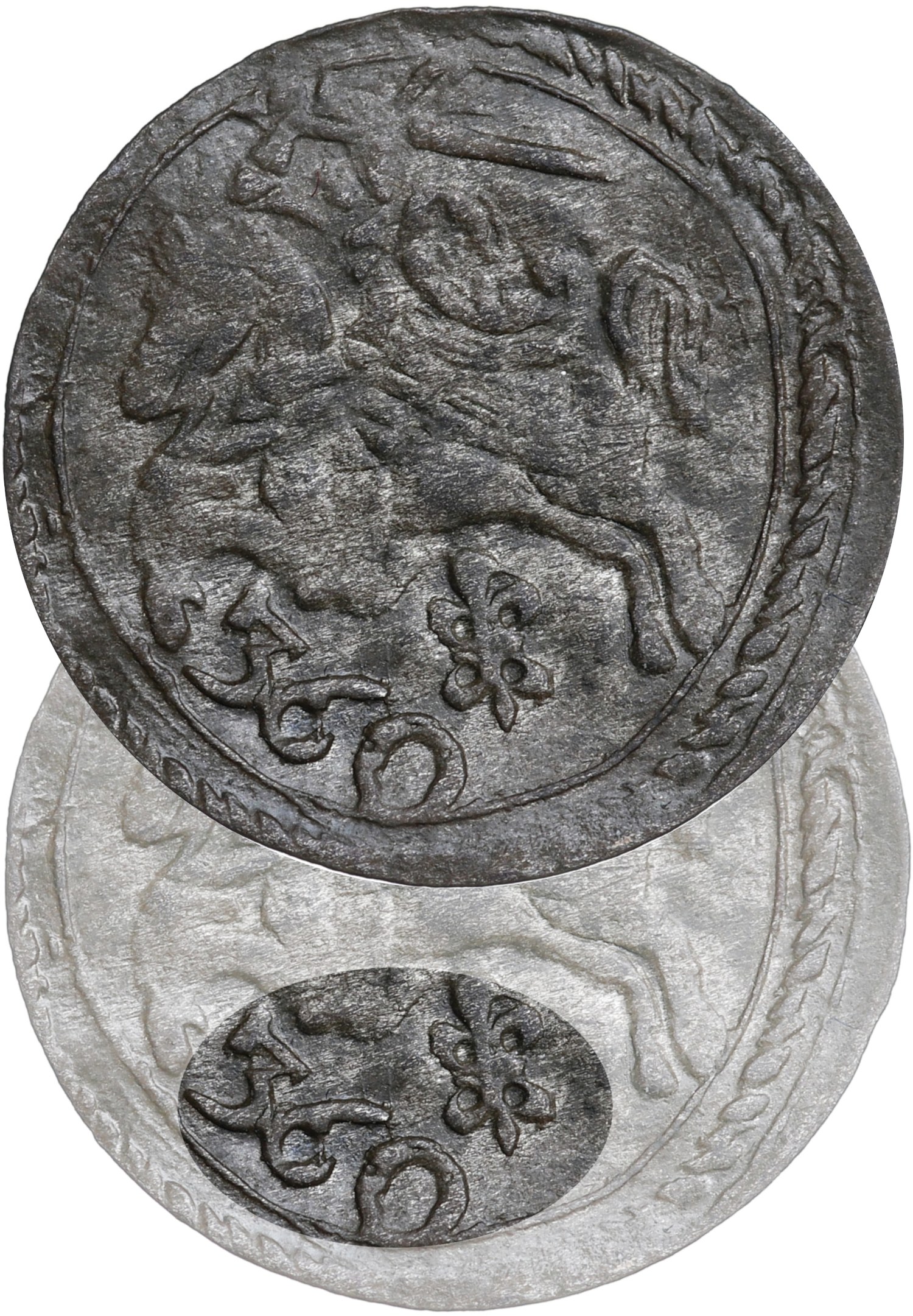 Bardzo rzadki szeląg litewski z herbem Gozdawa i napisem 360 pod Pogonią.