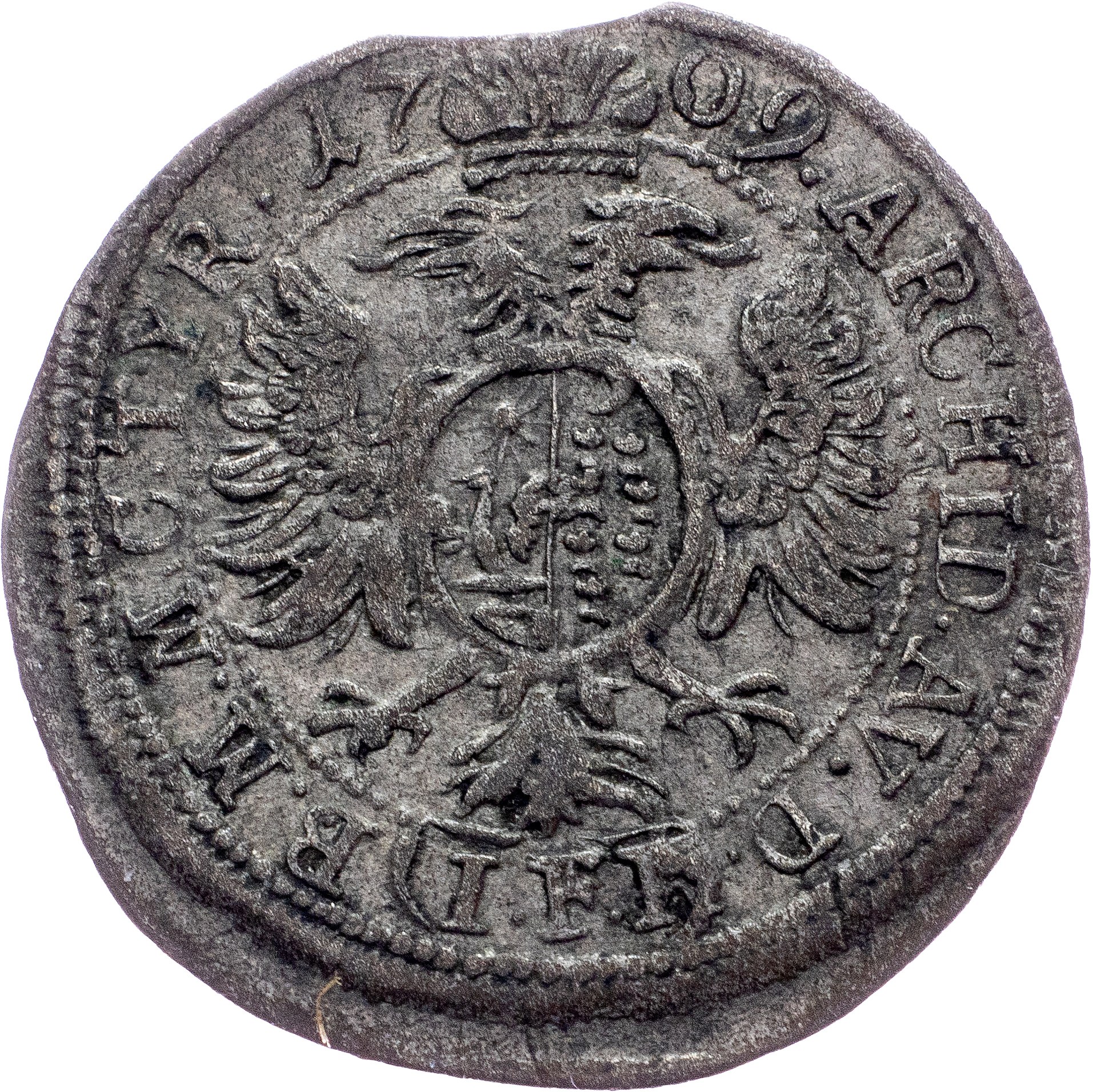 Austria-Hungary, Joseph I., 1 Kreuzer 1709, Hermannstadt, 0,925 g, Husz. 878, Ex Nudelman, Auction 6, Lot 302, the end of planchet, toned, rare; VF+