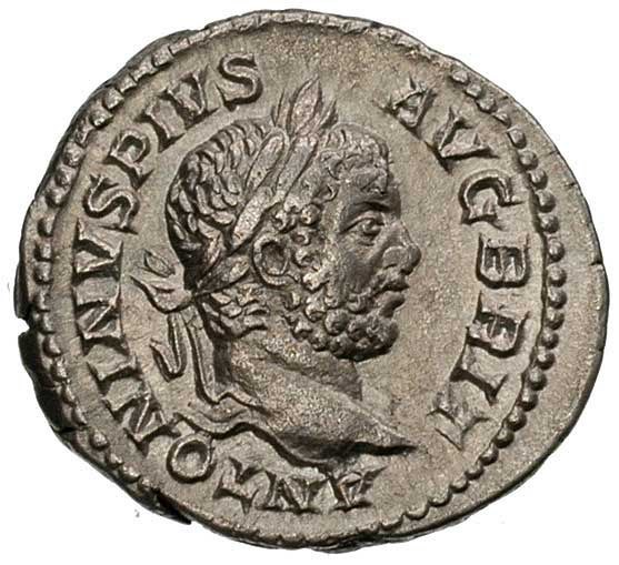 Karakalla 198-217, denar, Aw: Popiersie w wieńcu w praw...