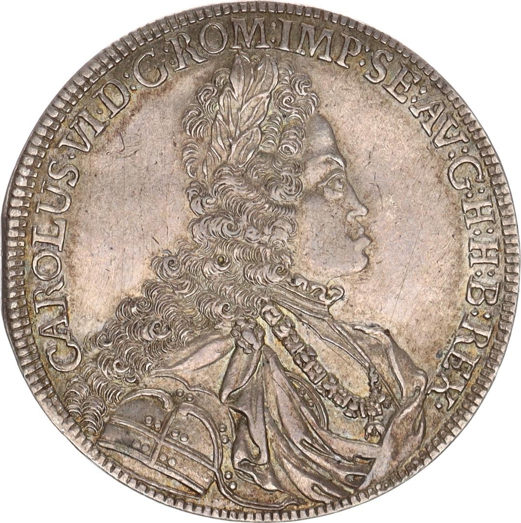 1/2 Tolar b.l., Tyroly Hall - typ mladý portrét / malý znak, nep řerušuje opis ARCHIDUX. AVSTRIAE. DUX. BVRGUNDIAE. COMES. TYROLIS / CAROLUS. VI. D: G: ROM: IMP: SE: AV: G: H: B: REX. "R" 14,188 g