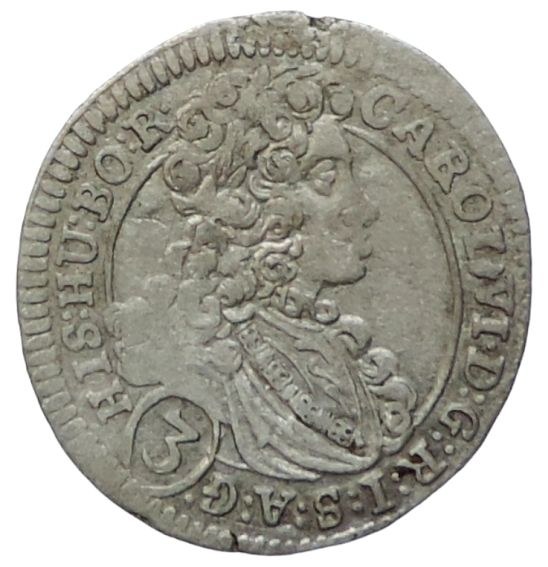 Karel VI. 1711-1740, 3 krejcar 1713 b.zn. Praha-Ritter