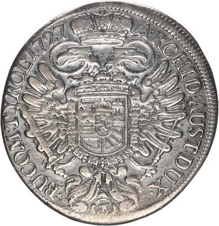 Karel VI. (1711-1740), Tolar 1727 FS, Praha-Scharff MKČ 1810 "R" 27,905 g