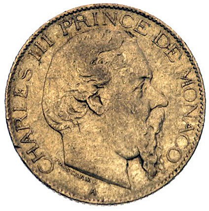 MONAKO, Karol III 1856-1889, 20 franków 1879/A, Paryż, Fr. 12, złoto 6.43 g