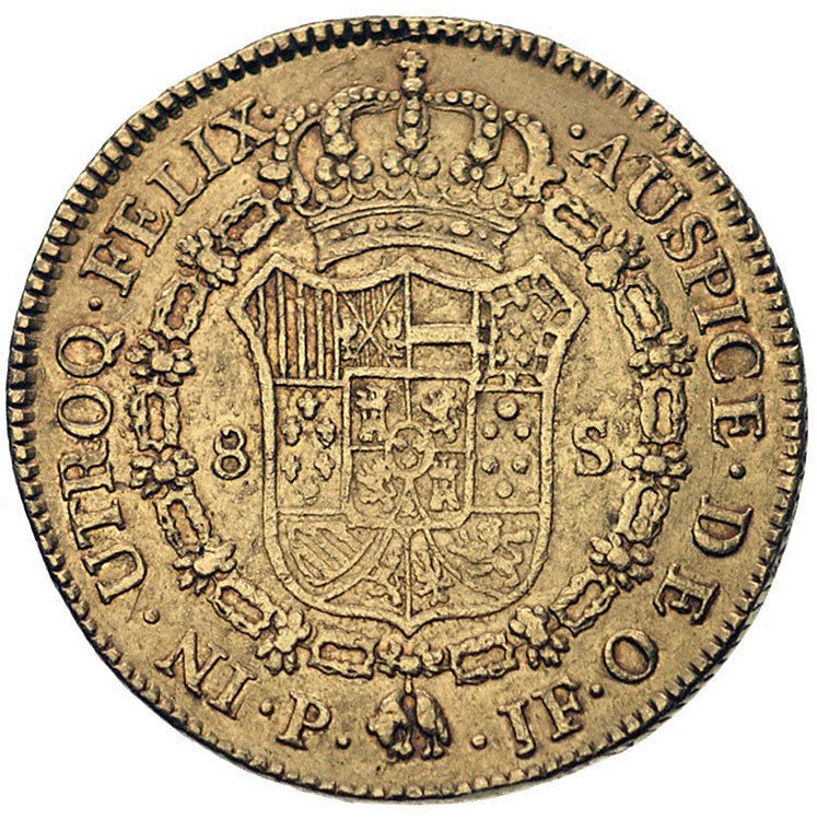Karol IV 1788-1808, 8 escudo 1800/P-JF, Popayan, Cayon ...