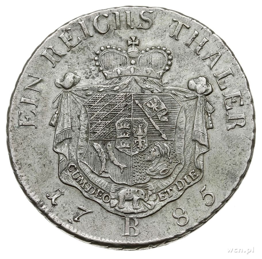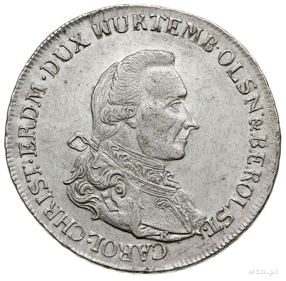 KSIĘSTWO OLEŚNICKIE - dynastia wirtemberska, Karol Krystian Erdmann 1744-1792, talar 1785, Wrocław, Aw: Popiersie z literą K w prawo i napis wokoło, Rw: Tarcza herbowa i napis wokoło, srebro 21.88 g, F.u.S 2474, Dav. 2879