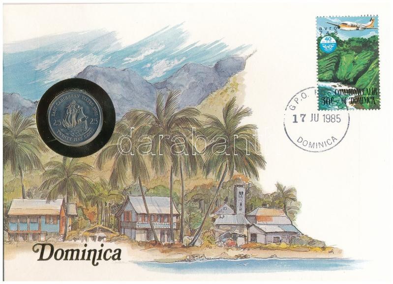 Kelet-Karibi Államok / Dominika 1981. 25c Cu-Ni felbélyegzett borítékban, bélyegzéssel, német nyelvű leírással T:UNC Eastern Caribbean States / Dominica 1981. 25 Cents Cu-Ni in envelope with stamp, cancellation and with German description C:UNC