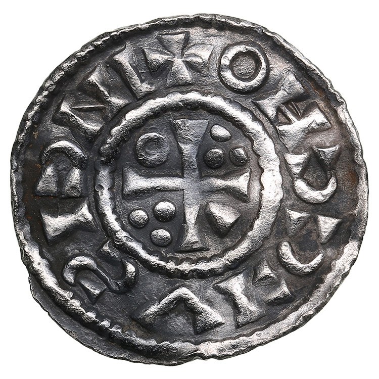 Rev.: Cross pattée; three pellets in two angles, annulet and wedge in the other; blundered legend +INCISV ECCHO (counterclockwise, some letters retrograde).