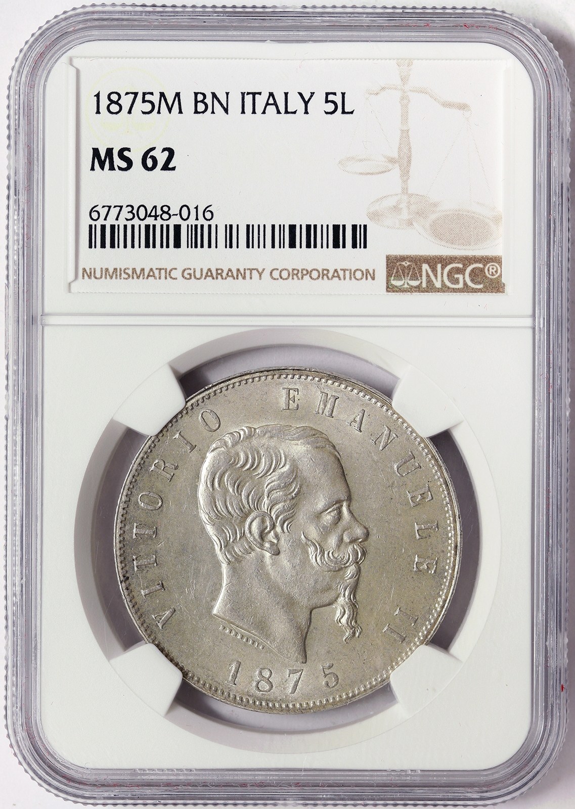Kingdom of Italy, Vittorio Emanuele II, 5 Lire 1875, Milan