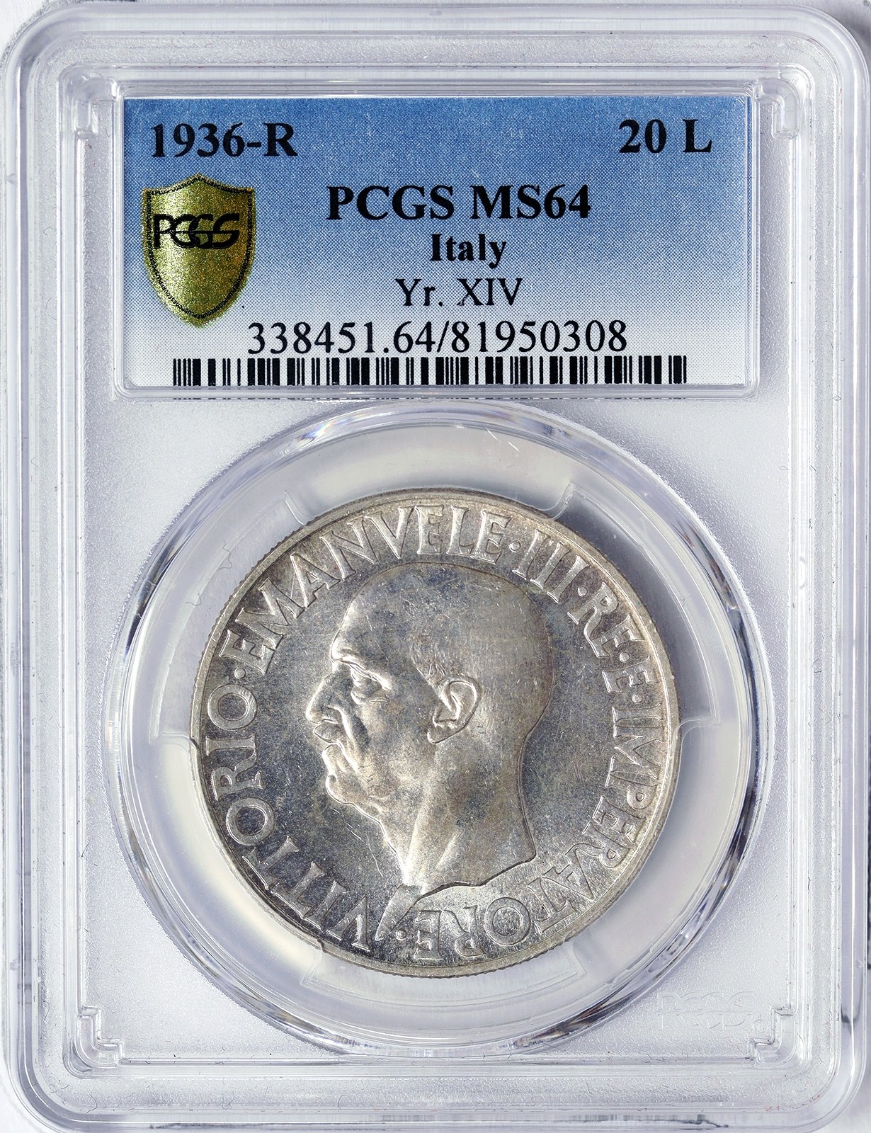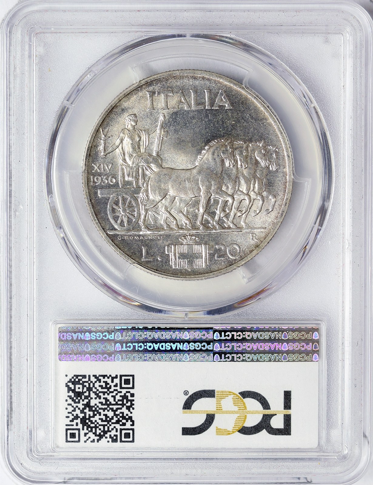 Kingdom of Italy, Vittorio Emanuele III, 20 Lire Quadriga 1936, Rome