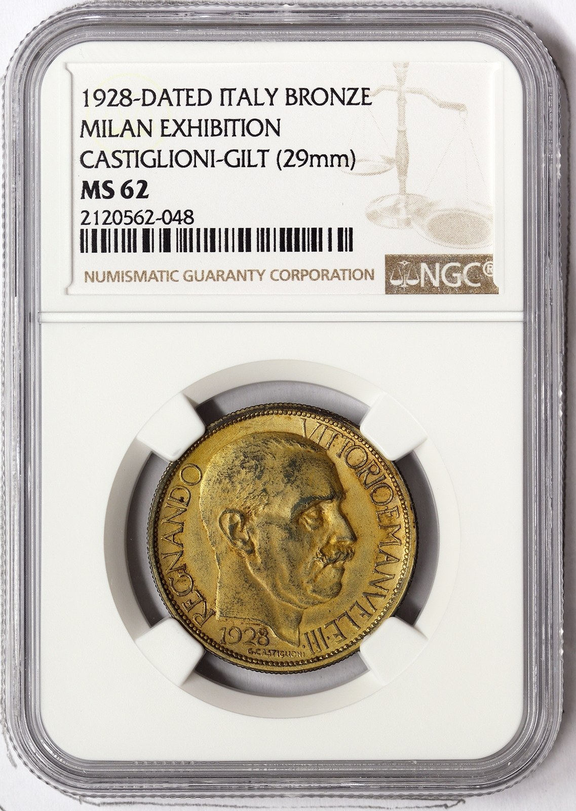 Gettone per l'esposizione di Milano. Most of the original gold gilt is still intact. Ø 29,5 mm. Gilt. 10,00 g