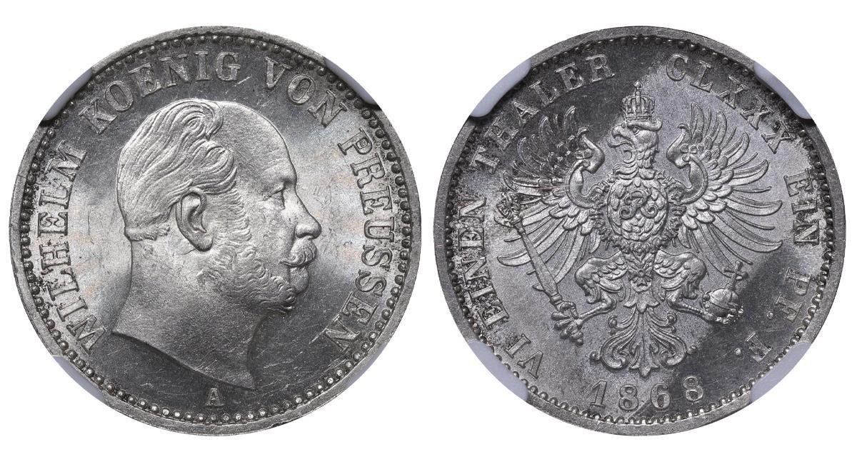 Kingdom of Prussia, ⅙ Thaler, 1868 year, A, NGC, MS 64