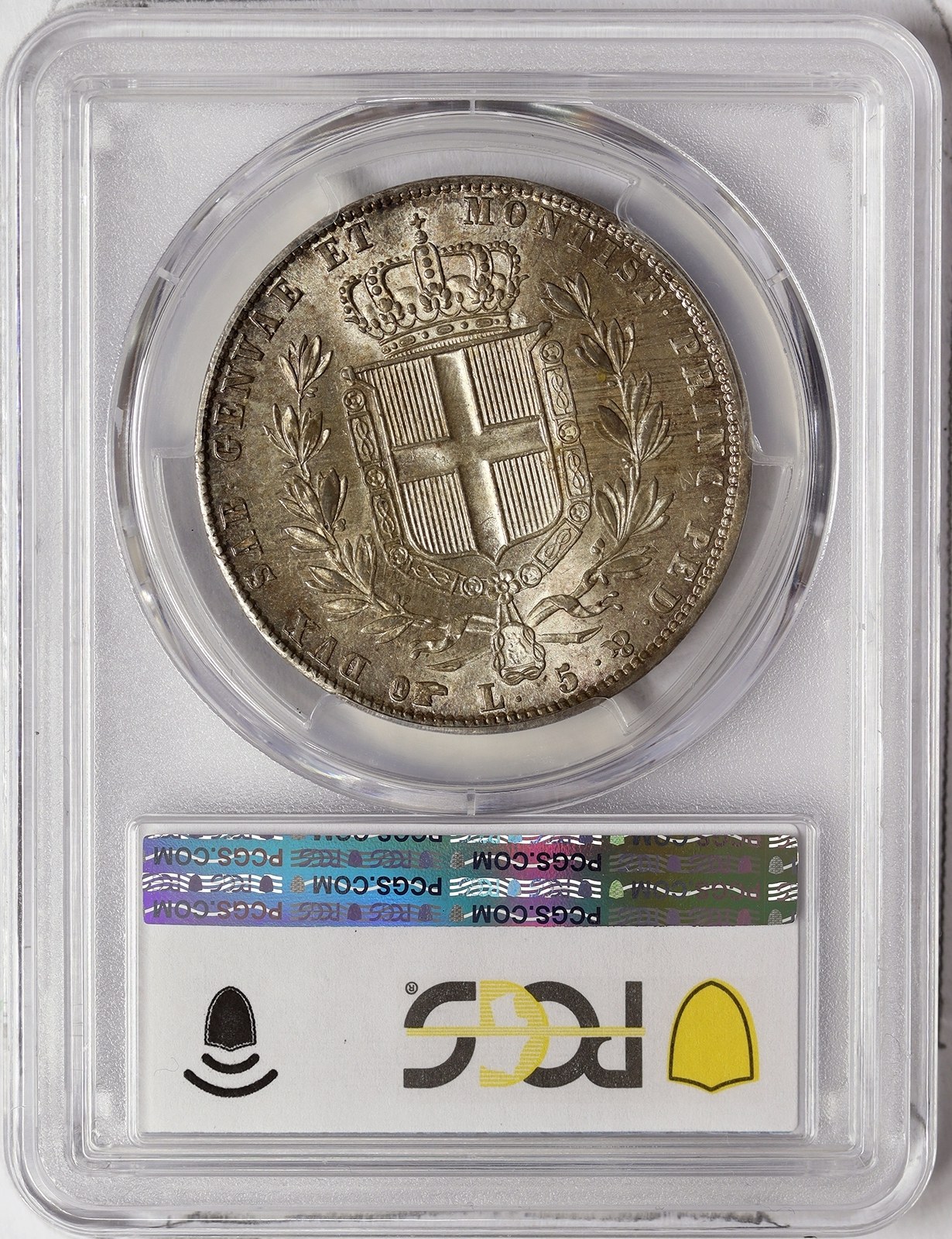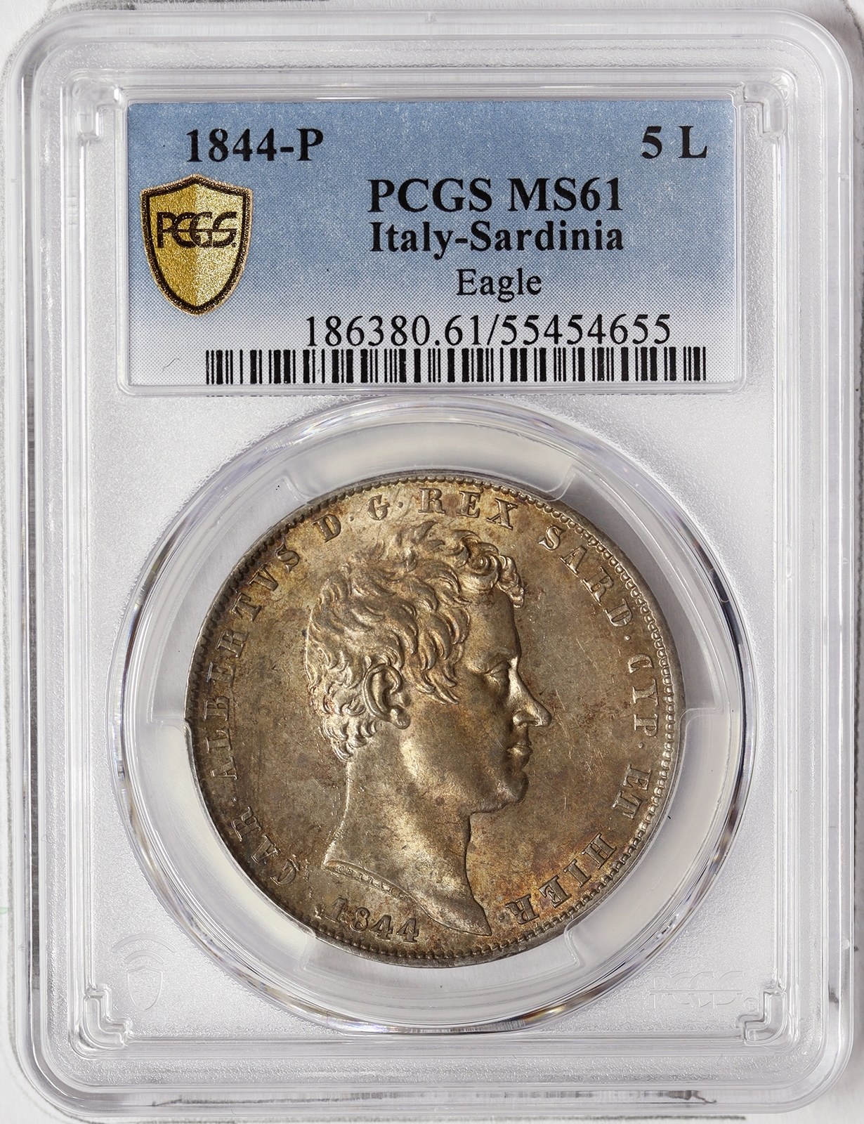 Kingdom of Sardinia, Carlo Alberto, 5 Lire 1844, Turin