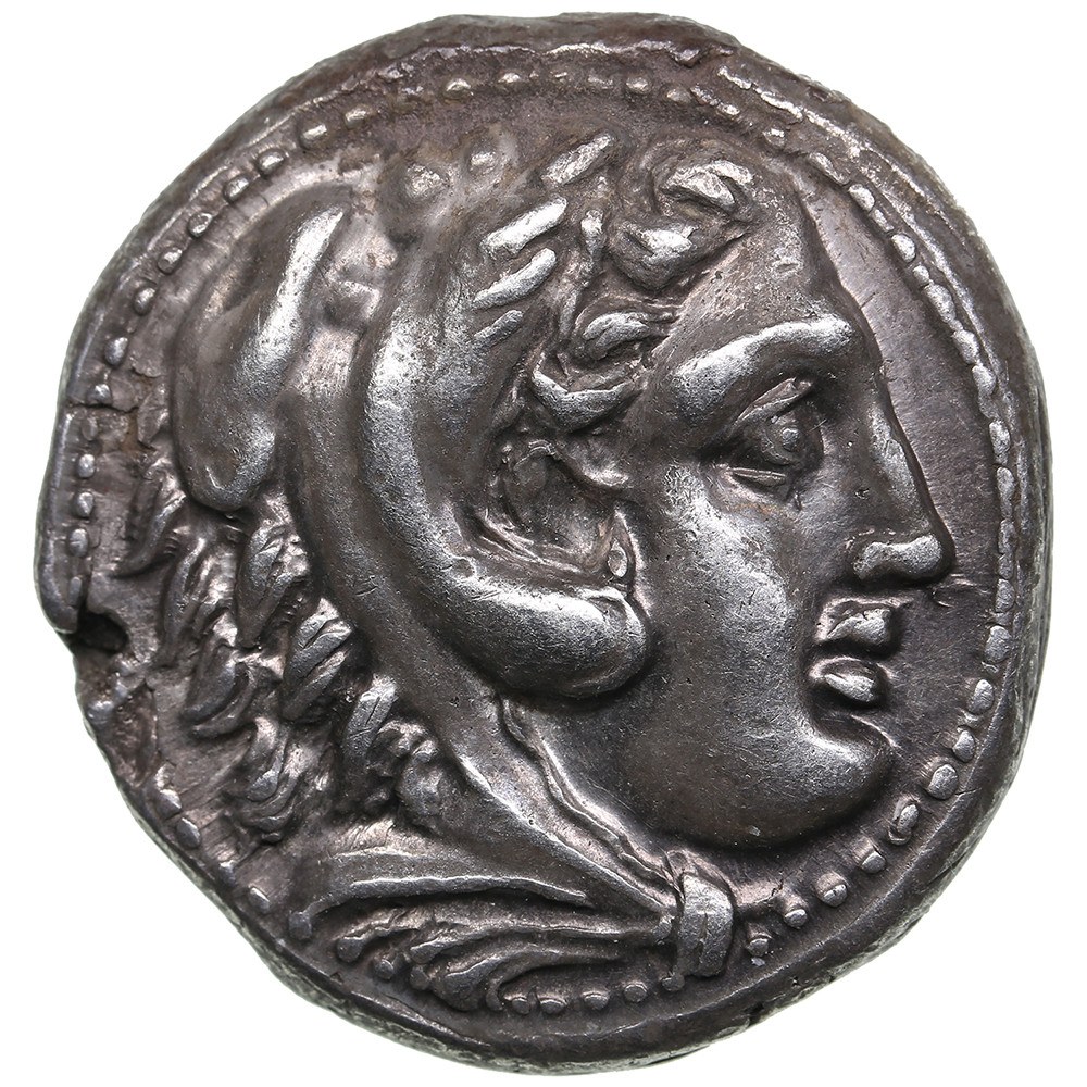 17.10 g. 25mm. AU/AU Magnificent specimen. 300-286 BC Astibus or Damaston. In the name of Alexander in Macedonian tertadrachm type. Head of Herakles to right, wearing lion skin headdress/ AΛEΞANΔPOY, Zeus seated left on low throne, holding long scepter in his left hand and eagle standing right with closed wings in his right; to left, wreath. Price 645.