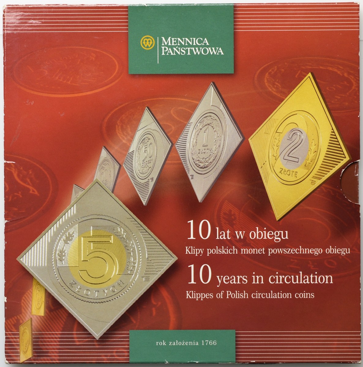 Klipy polskich monet obiegowych - 10 lat w obiegu 2005 rok.