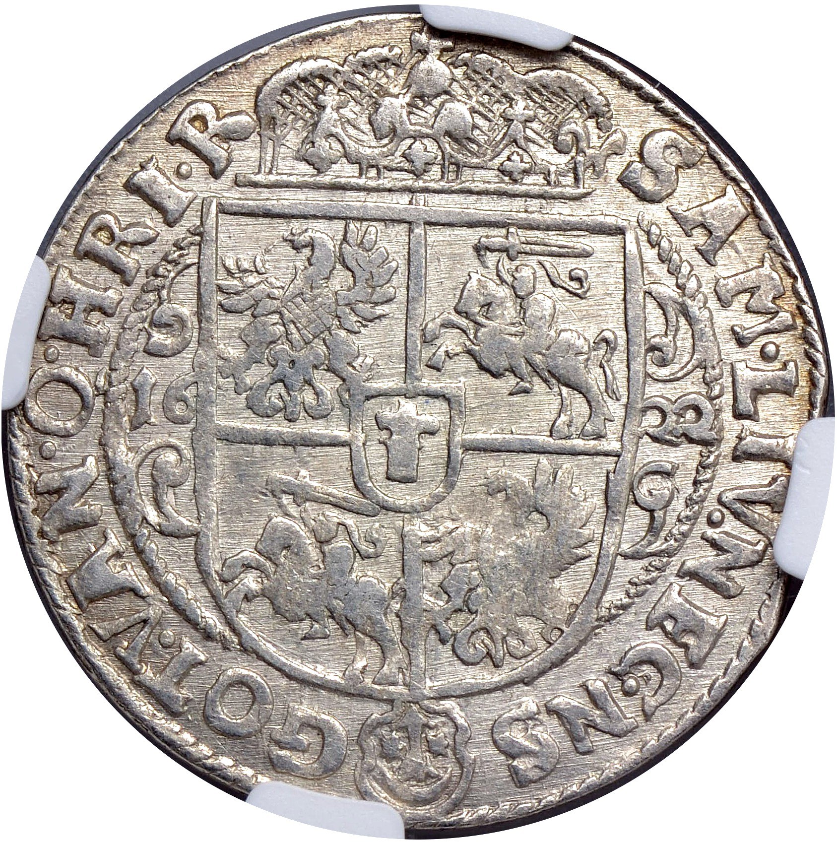 Korona w rzadszej odmianie – trzy rozety w obręczy i dwie na fleuronach.Błąd w legendzie – brak litery V w wyrazie NSV. Rzadka moneta.