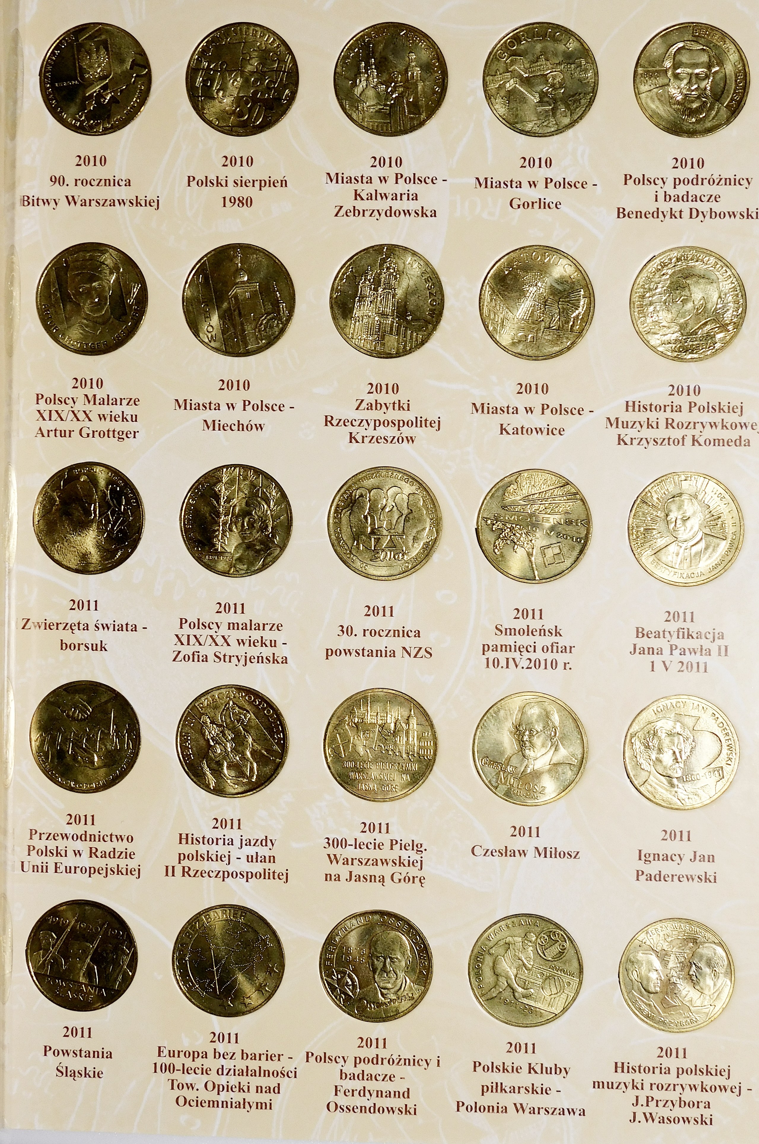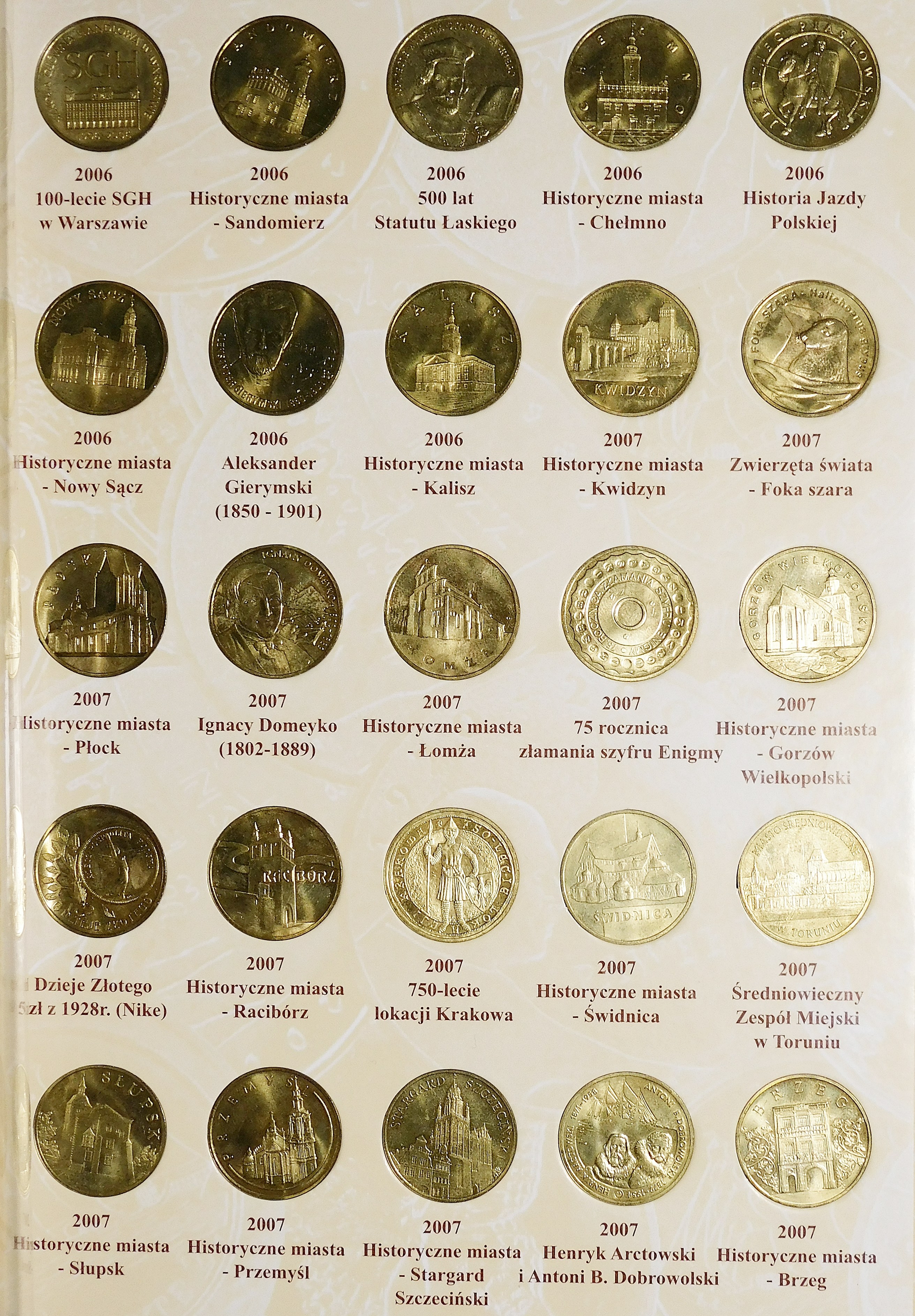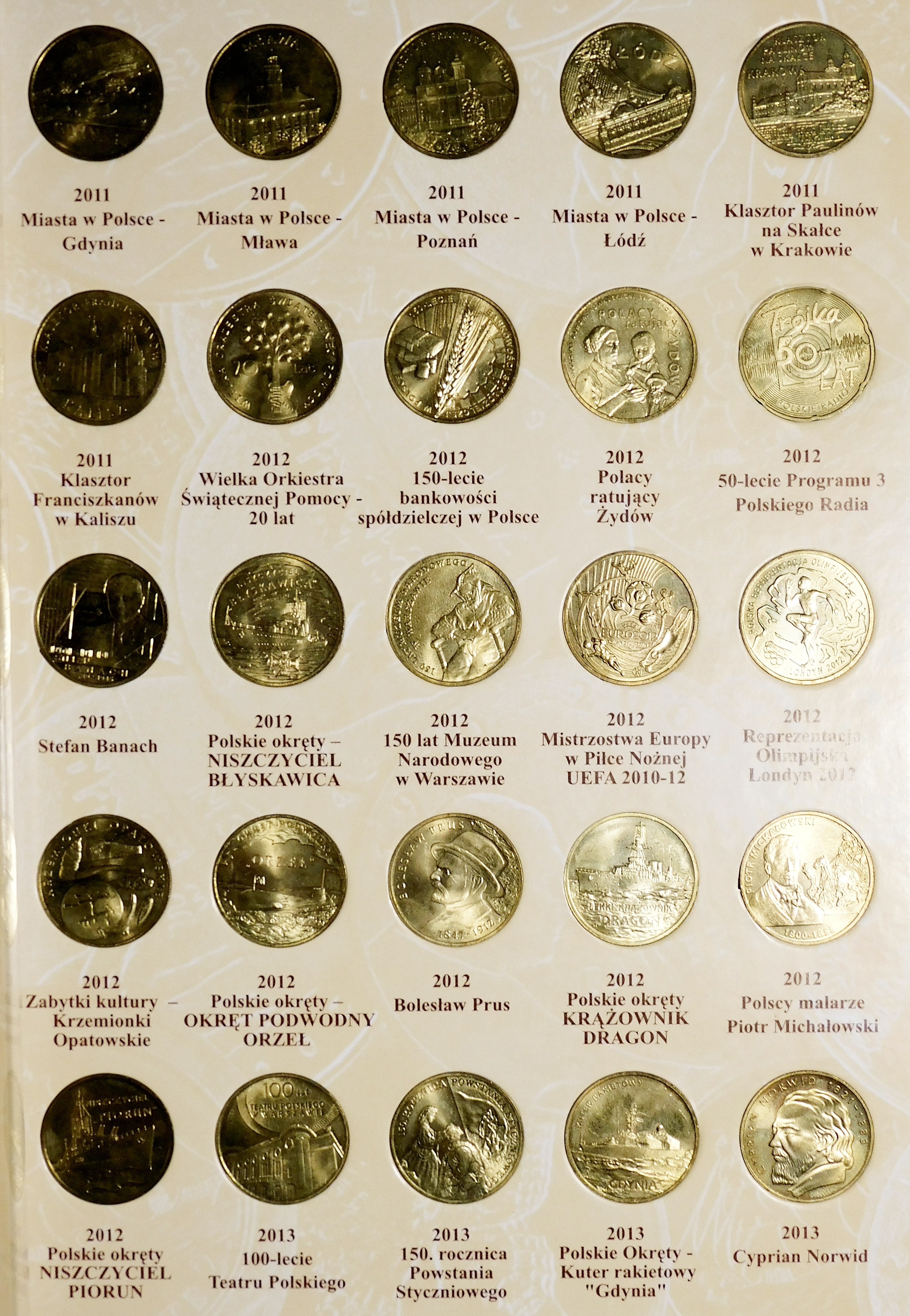 Monety ułożone chronologicznie w dedykowanym albumie.