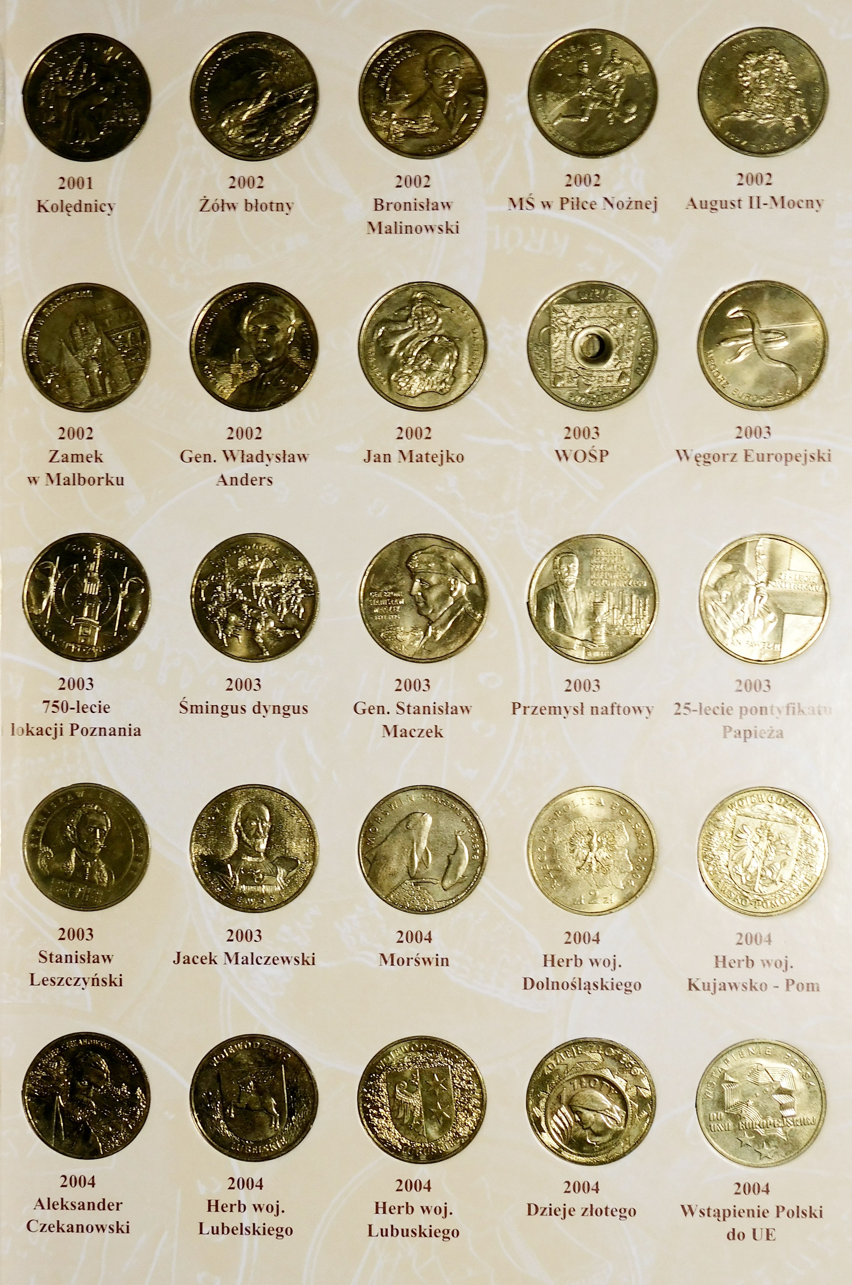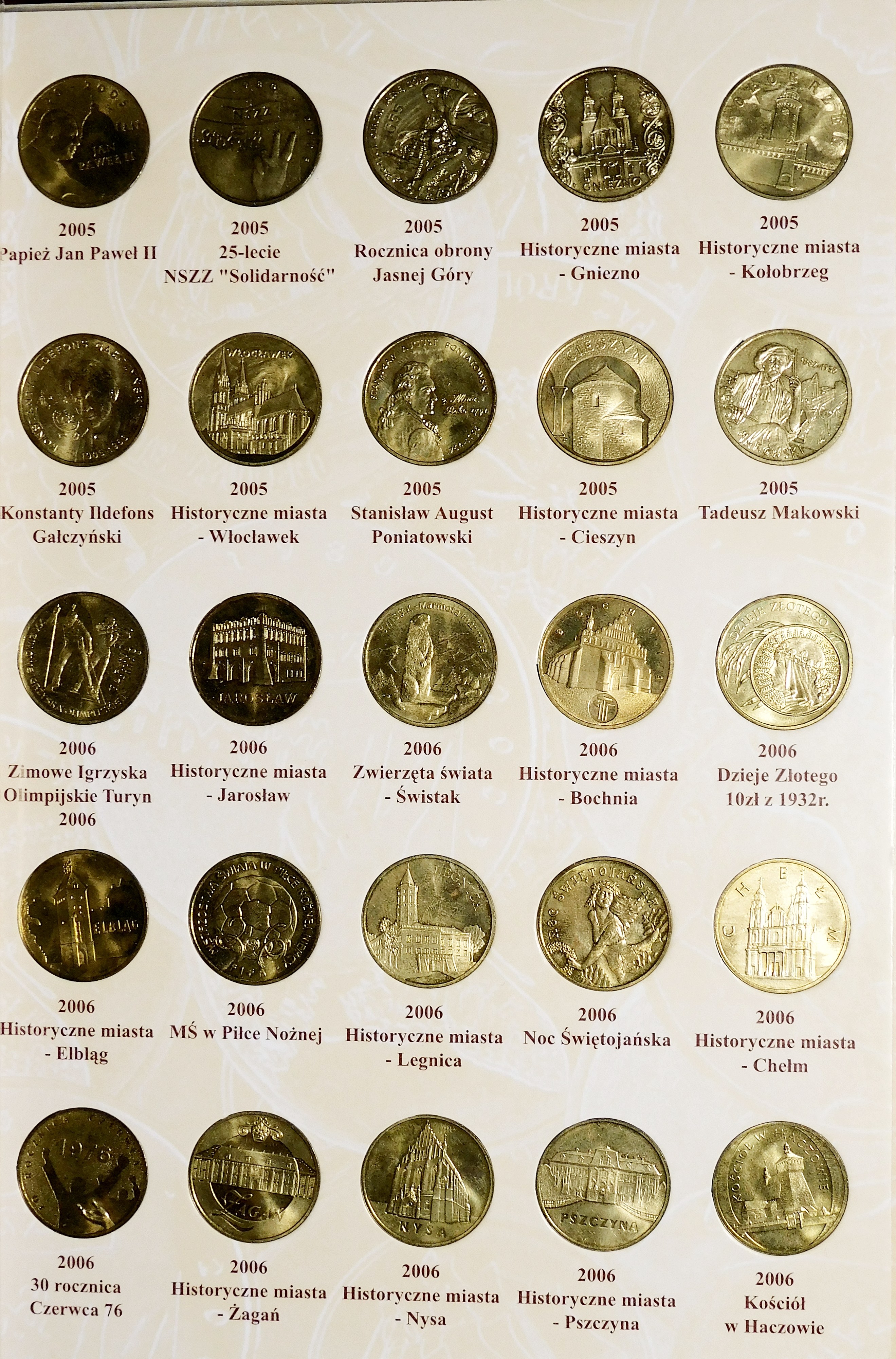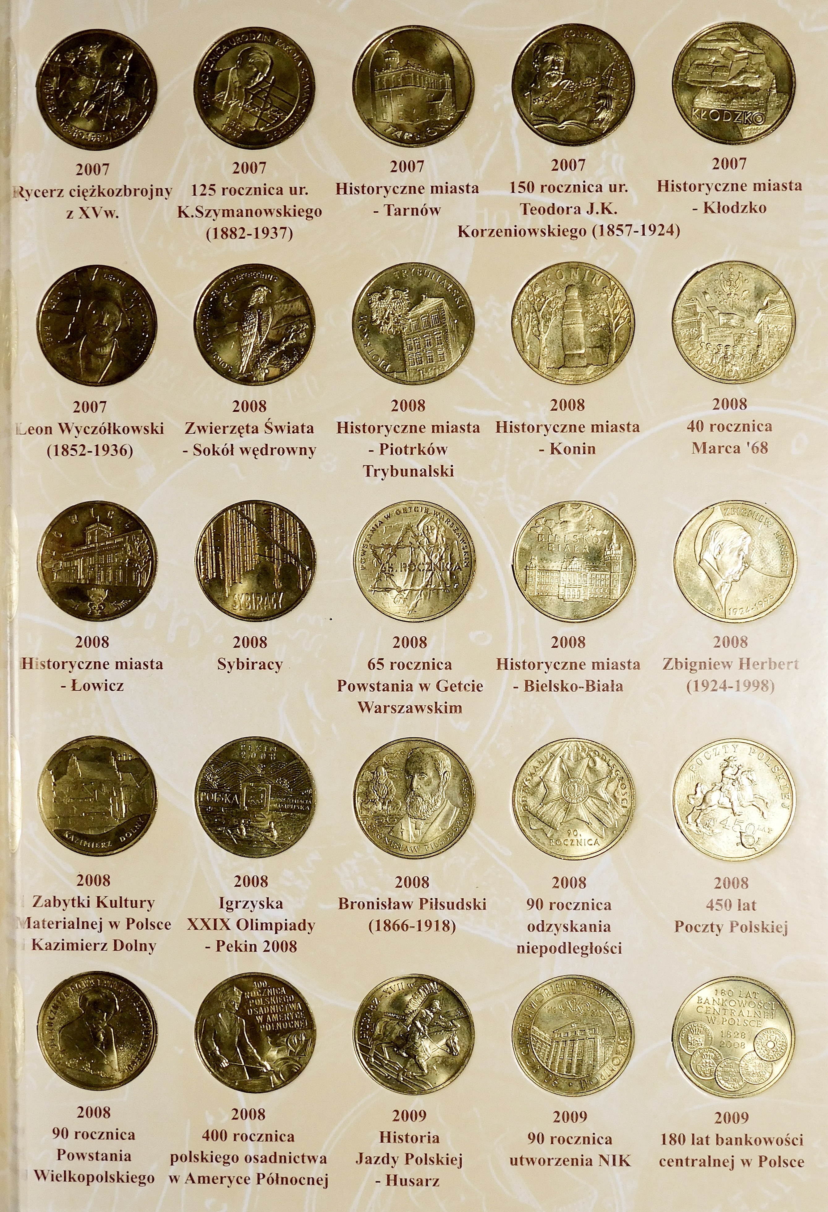 Monety ułożone chronologicznie w dedykowanym albumie.