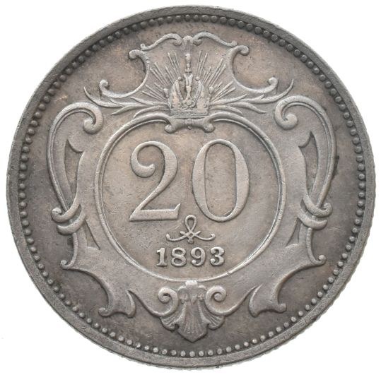 Korunová měna, 20 hal. 1893 b.z.