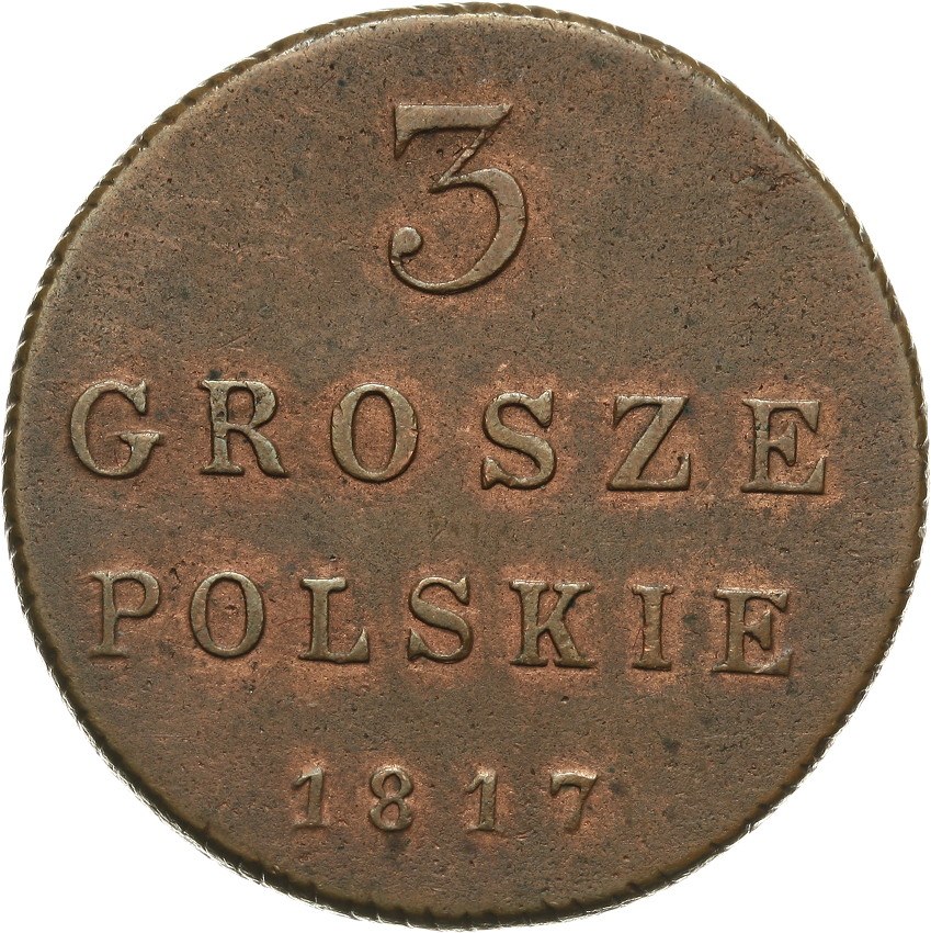 Pięknie zachowany trojak w naturalnym kolorze miedzi z prześwitującą czerwienią menniczą . Plage 150, Kamiński - Kopicki 600.