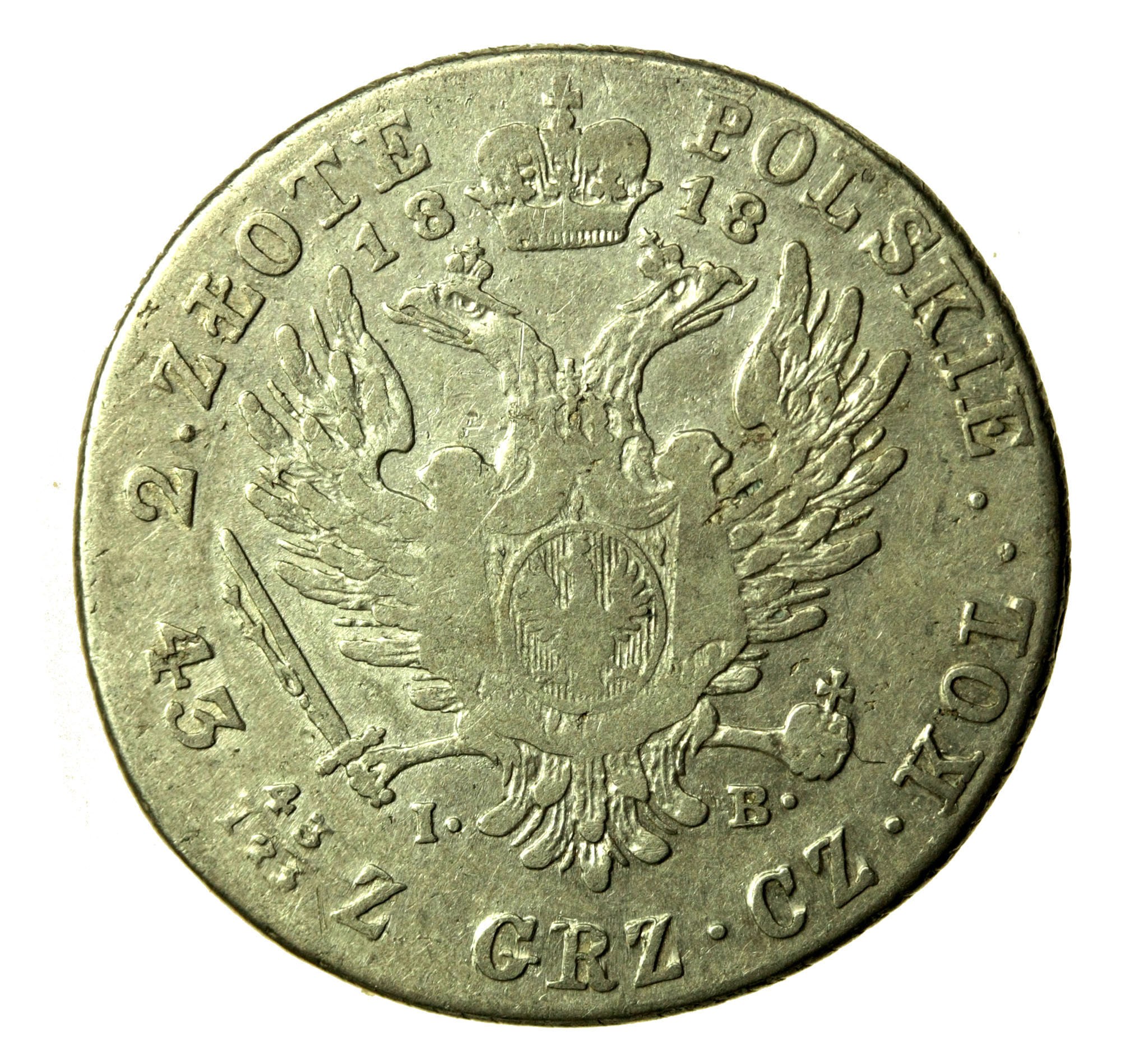 Królestwo Polskie, Aleksander I, 2 złote 1818. Stan zachowania 3/3+. Obiegowy egzemplarz, bez mechanicznych uszkodzeń. Literatura: Plage 47, Kopicki 2690 (R)