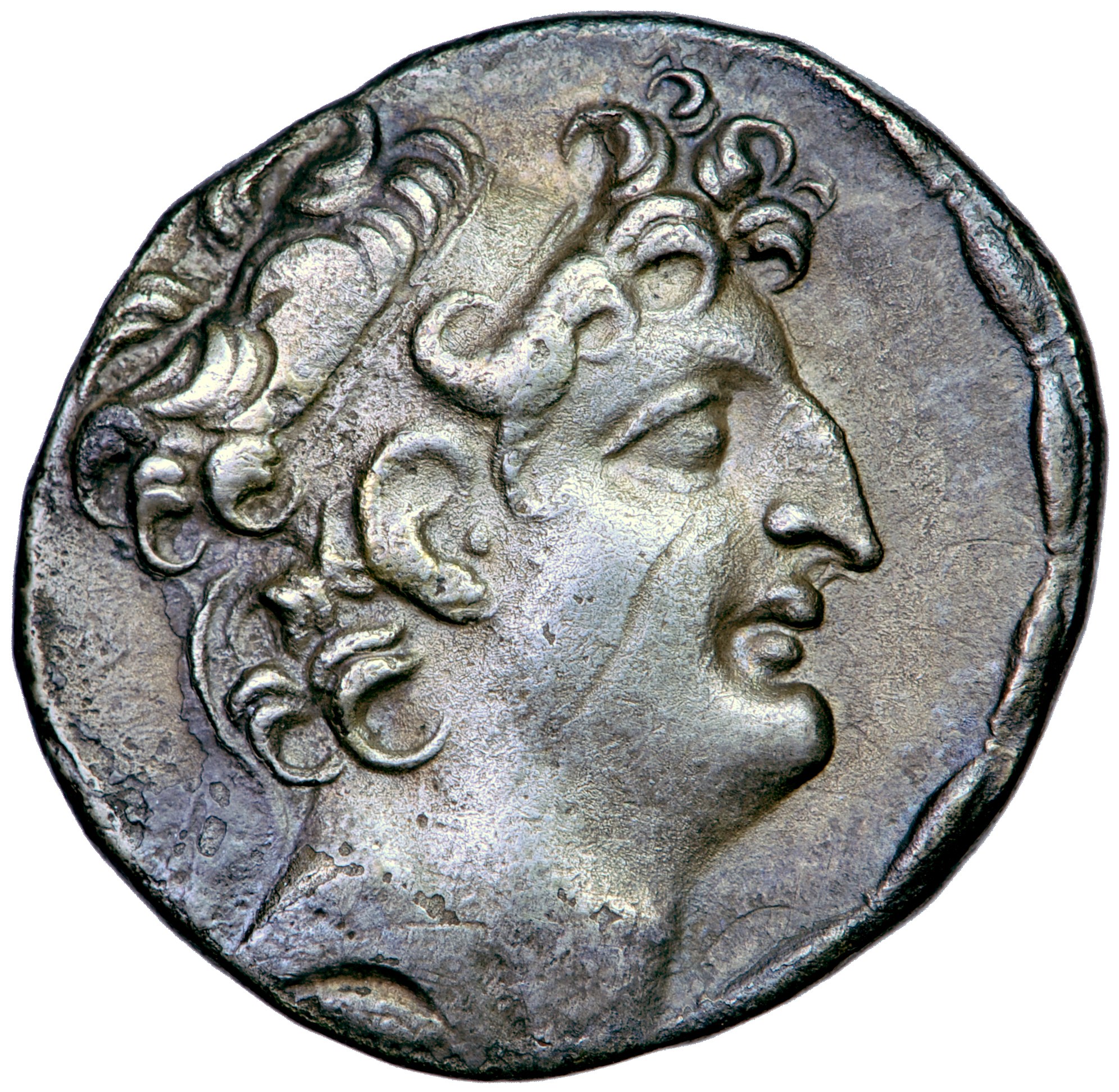 Av. Głowa Antiochia VIII w diademie w prawo, ozdobny otok.
