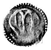 ŚLĄSK, Księstwo Głogowskie, halerz, Kożuchów, Aw: Gotycka litera M, Rw: Orzeł, Fbg 273, 0.41 g., rzadka odmiana