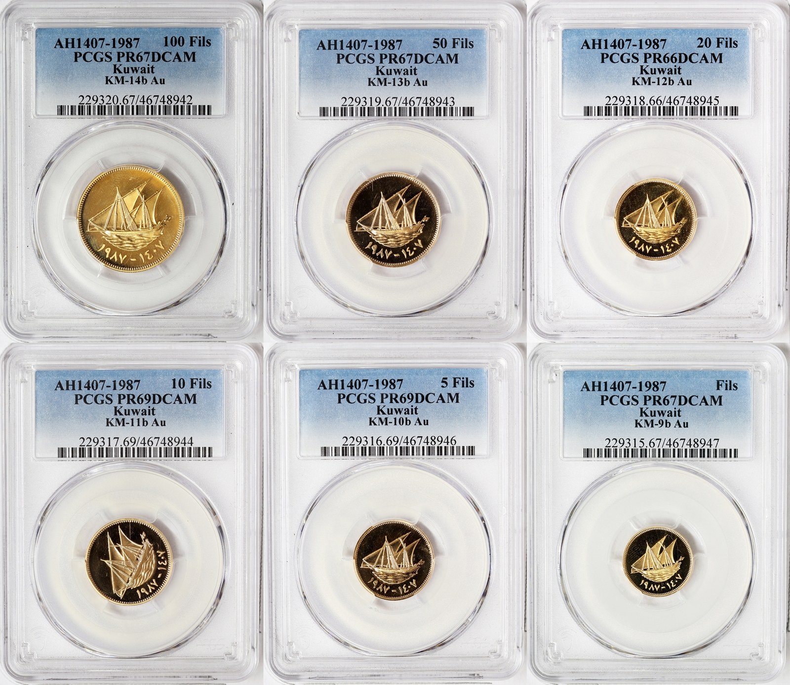 Kuwait, Jabir Ibn Ahmad, Lot 6 pcs. 100, 50, 20, 10, 5, 1 Fils 1987