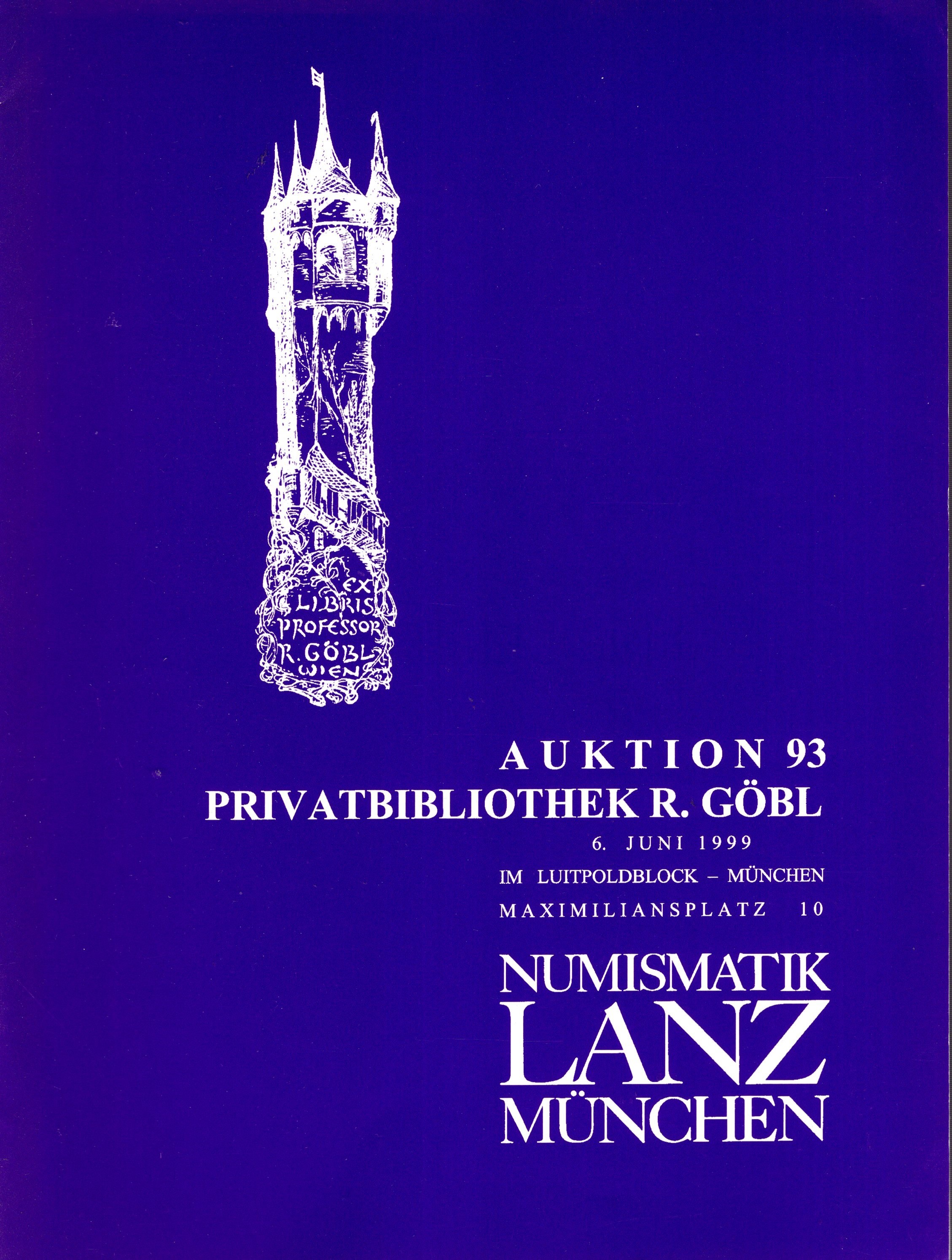 LANZ NUMISMATIK. Auktion 93. Munchen, 6 - Juni, 1999. Privatebibliothek Robert Gobl. Pp 51, nn. 1043. brossura ed. ottimo stato. ottima biblioteca.