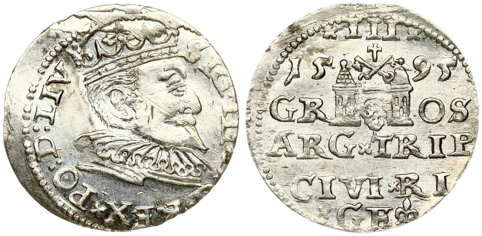 Latvia 3 Groszy 1595 Riga Sigismund III Vasa(1587-1632). Averse: Crowned bust right. Reverse...