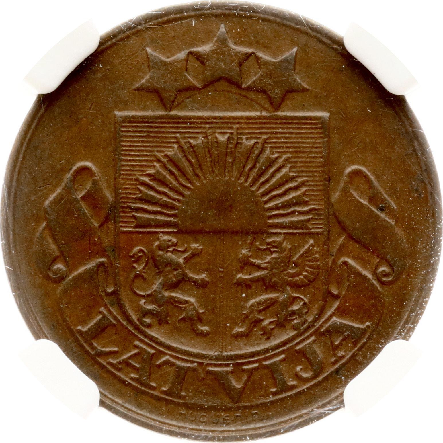 Latvia. 5 Santimi 1922. Bronze. KM 3. NGC AU 58 BN.