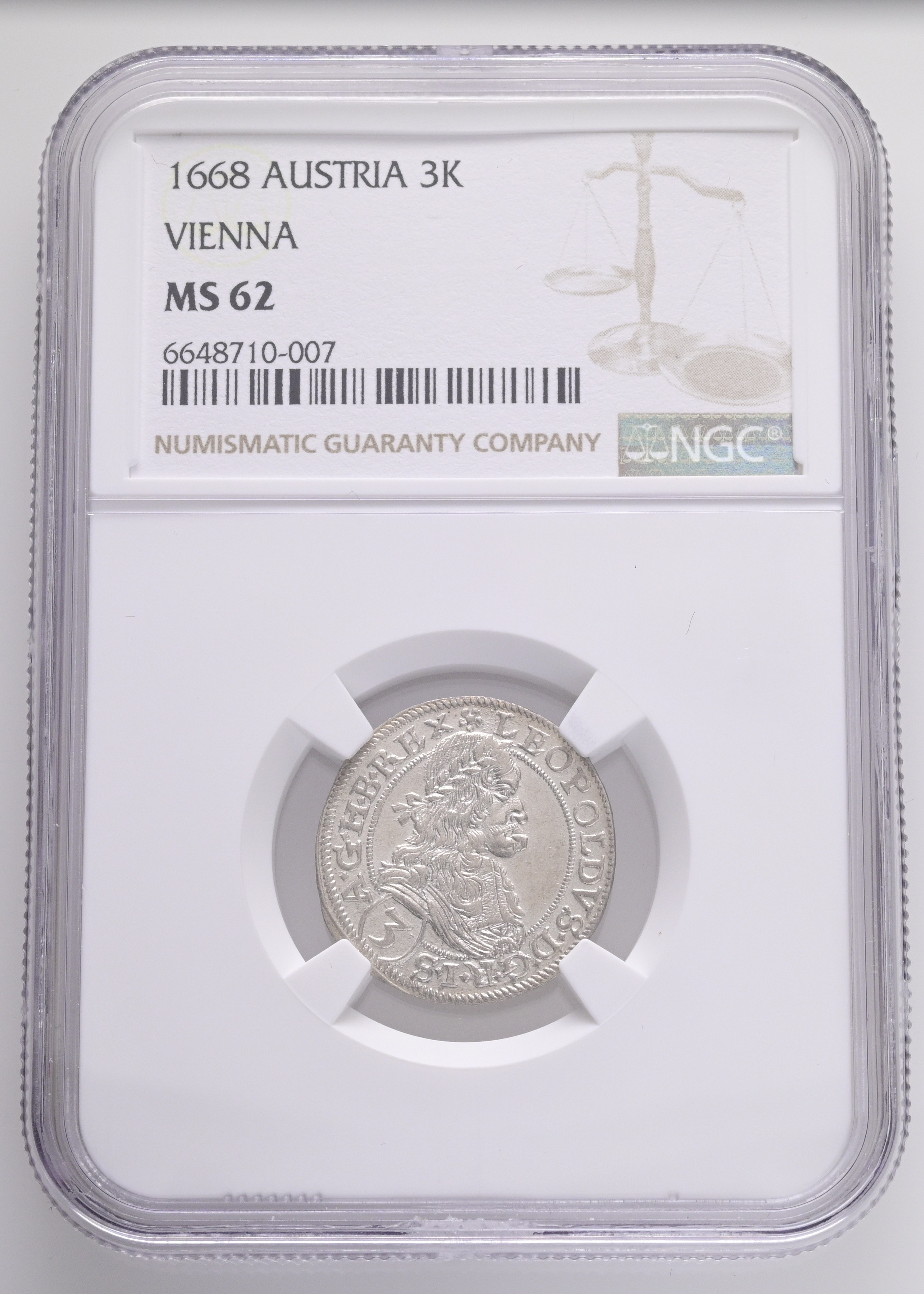 LEOPOLD I. 1657-1705 3 Kreuzers 1668 Vienna KM#1169 Ag. 1,77g 22mm NGC 6648710-007