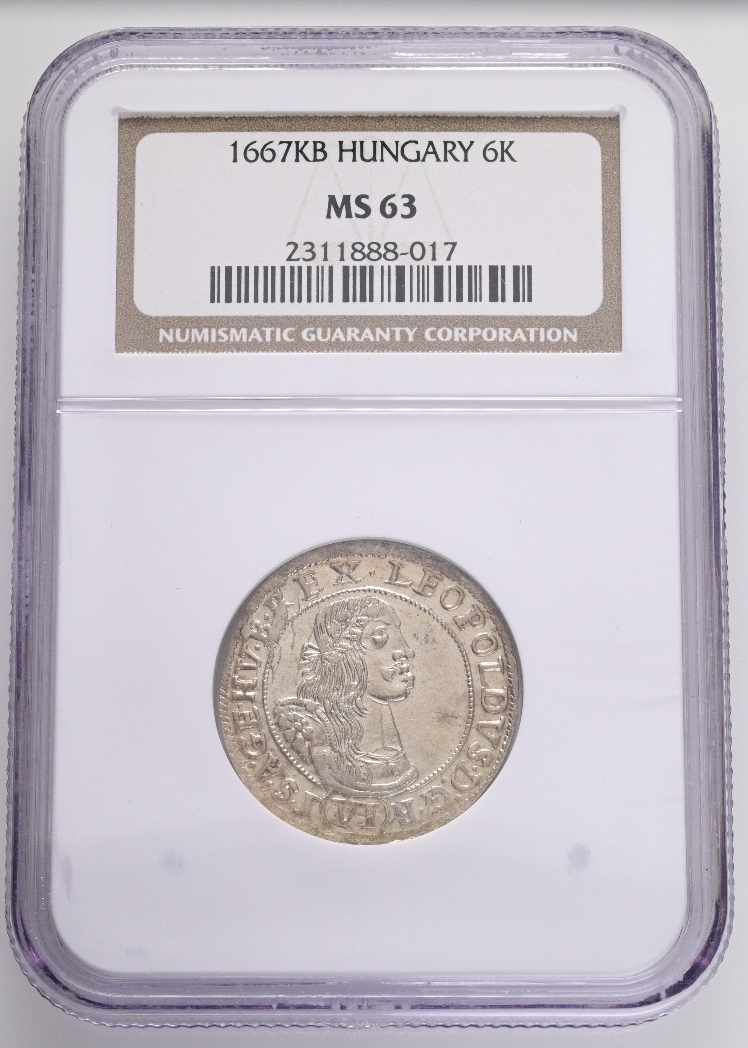 LEOPOLD I. 1657-1705 6 Kreuzers 1667 KB Kremnica KM#164, ÉH#1072, Billon Ag.438 3,1g 26,2mm NGC 2311888-017