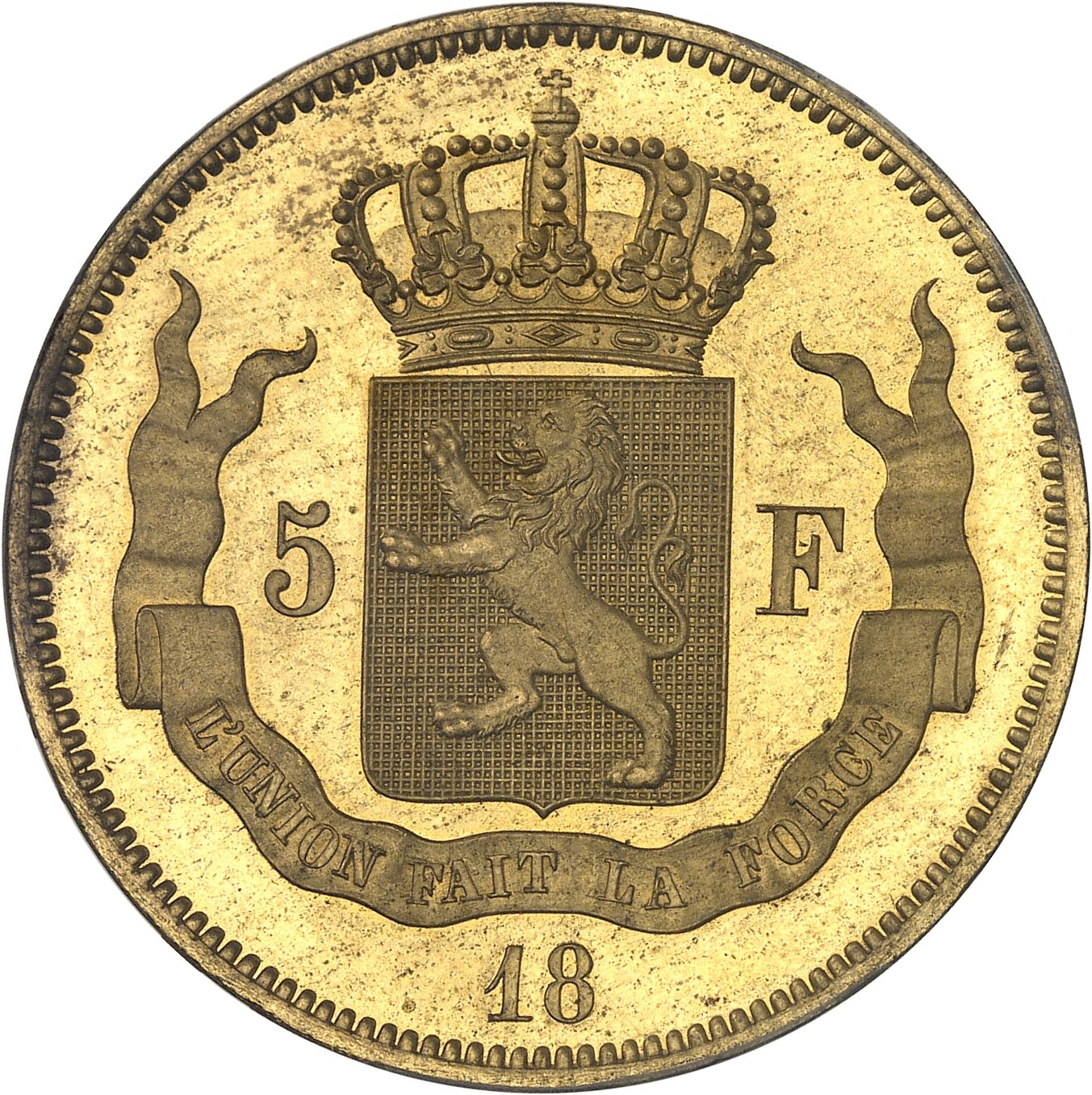 Léopold Ier (1831-1865). Essai de 5 francs en bronze doré par F. Distexhe 1847, Bruxelles. PCGS SP64 (39279951).
