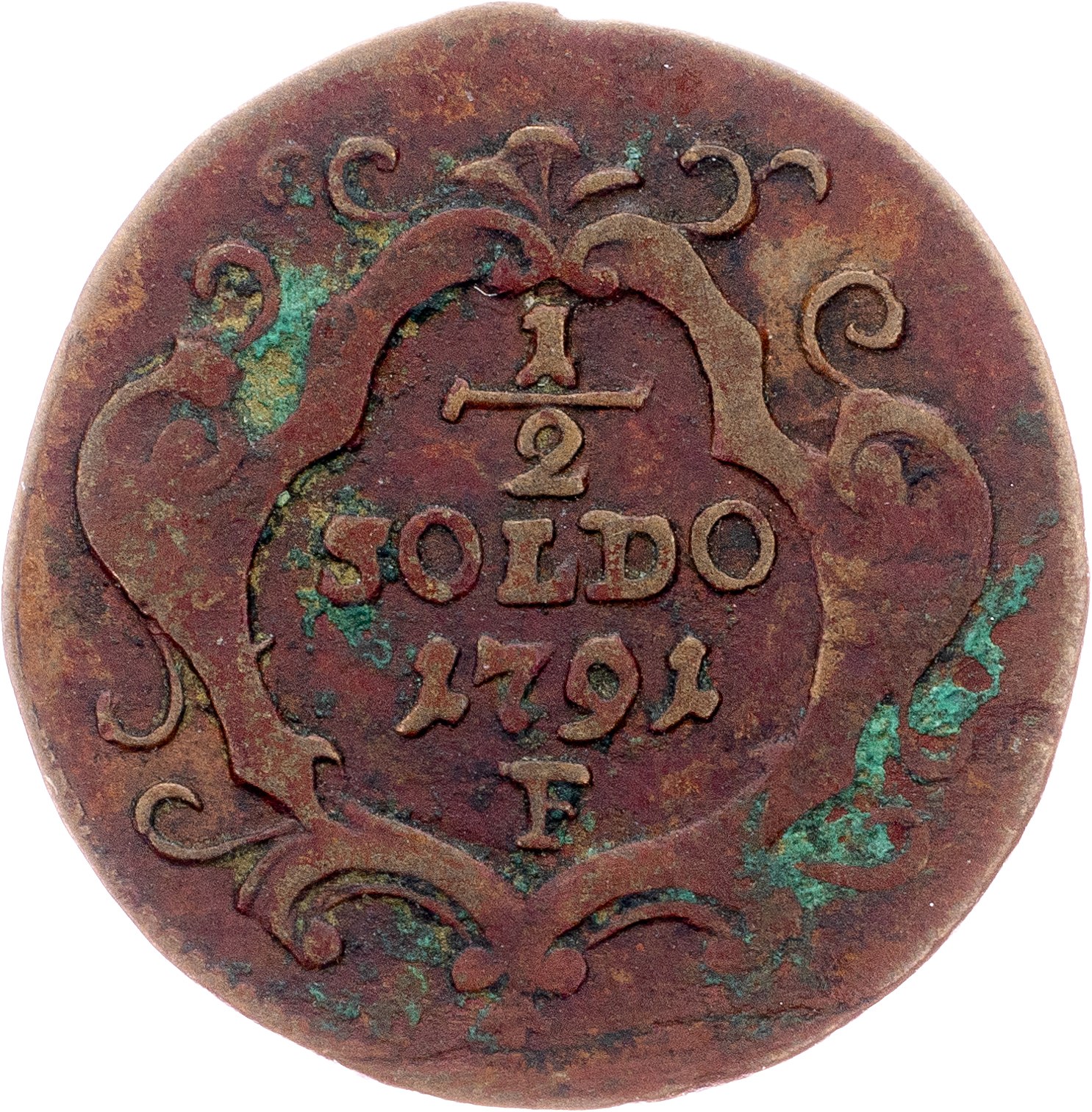 Leopold II., 1/2 Soldo 1791, Hall, 1,34 g, Copper, Her. 105, Rare; VF