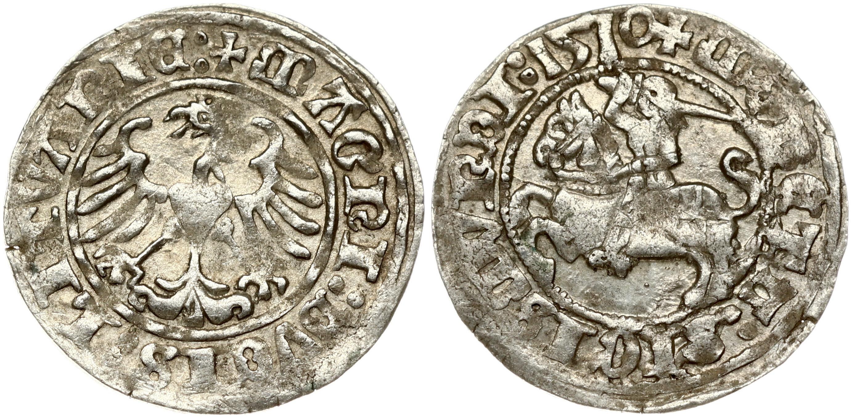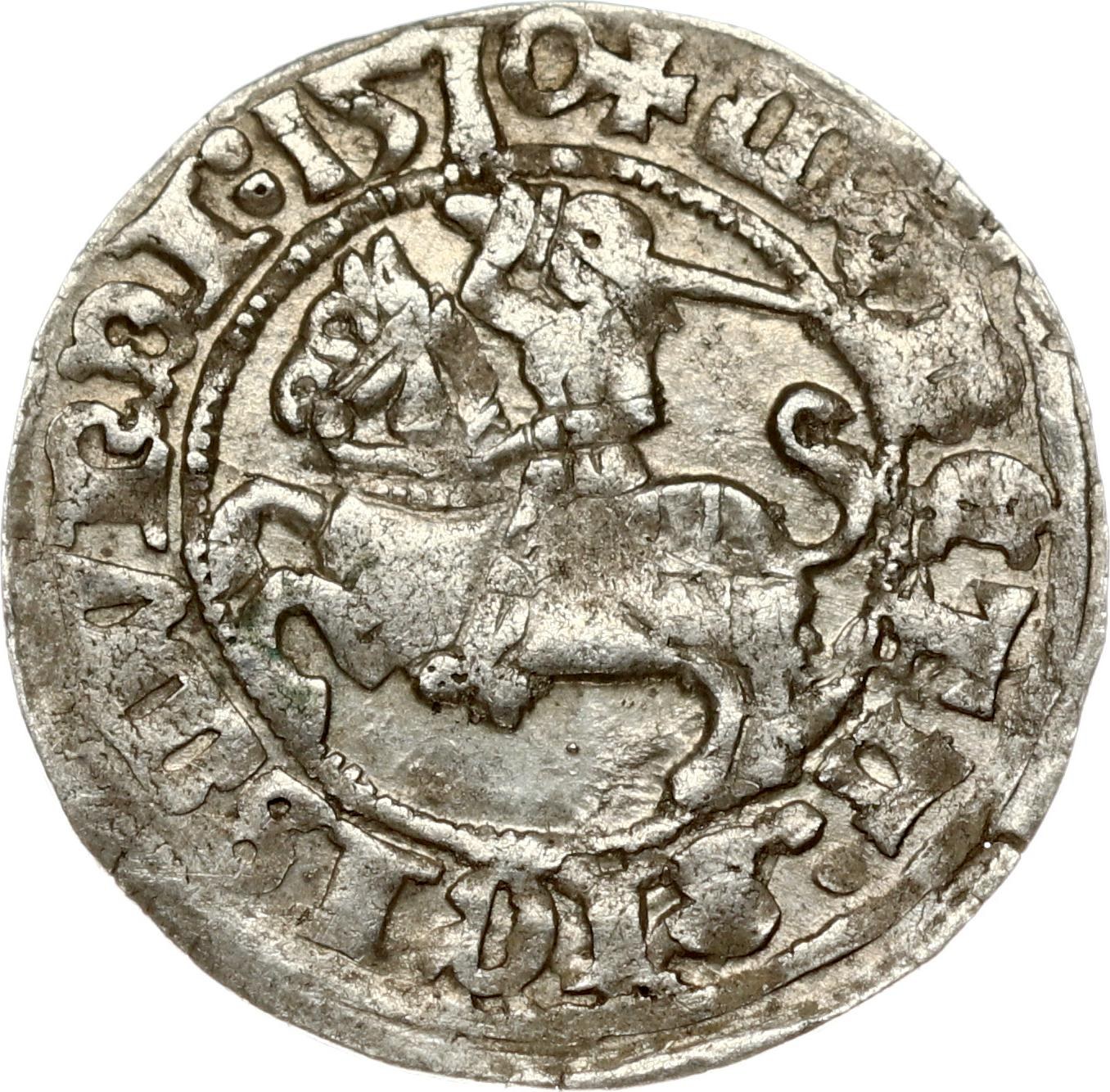 Lithuania 1/2 Grosz 1510 Vilnius. Sigismund I the Old (1506-1548). Obverse: Eagle. Reverse: Knight rider (Vytis) with a sword riding toward the left. Silver. Ivanauskas 1S376-3 (R )