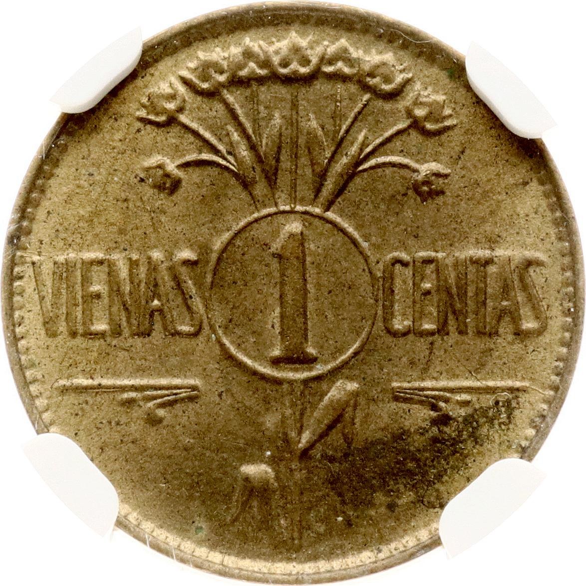 Lithuania. 1 Centas 1925. Aluminum-Bronze. KM 71. NGC MS 63.